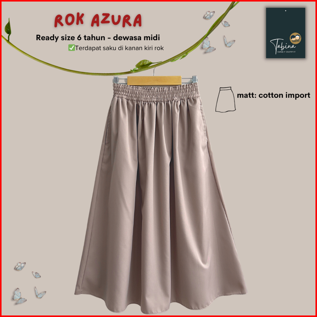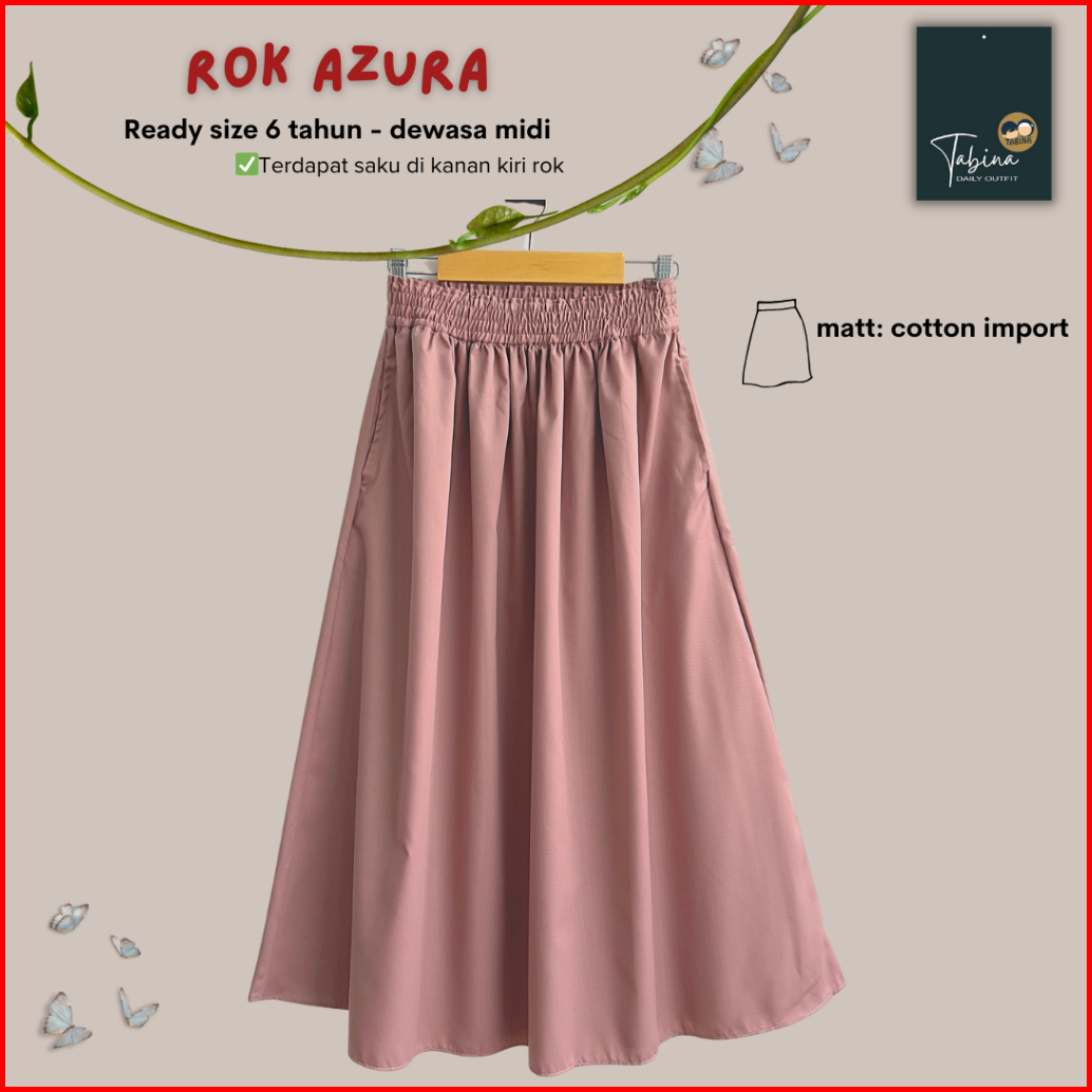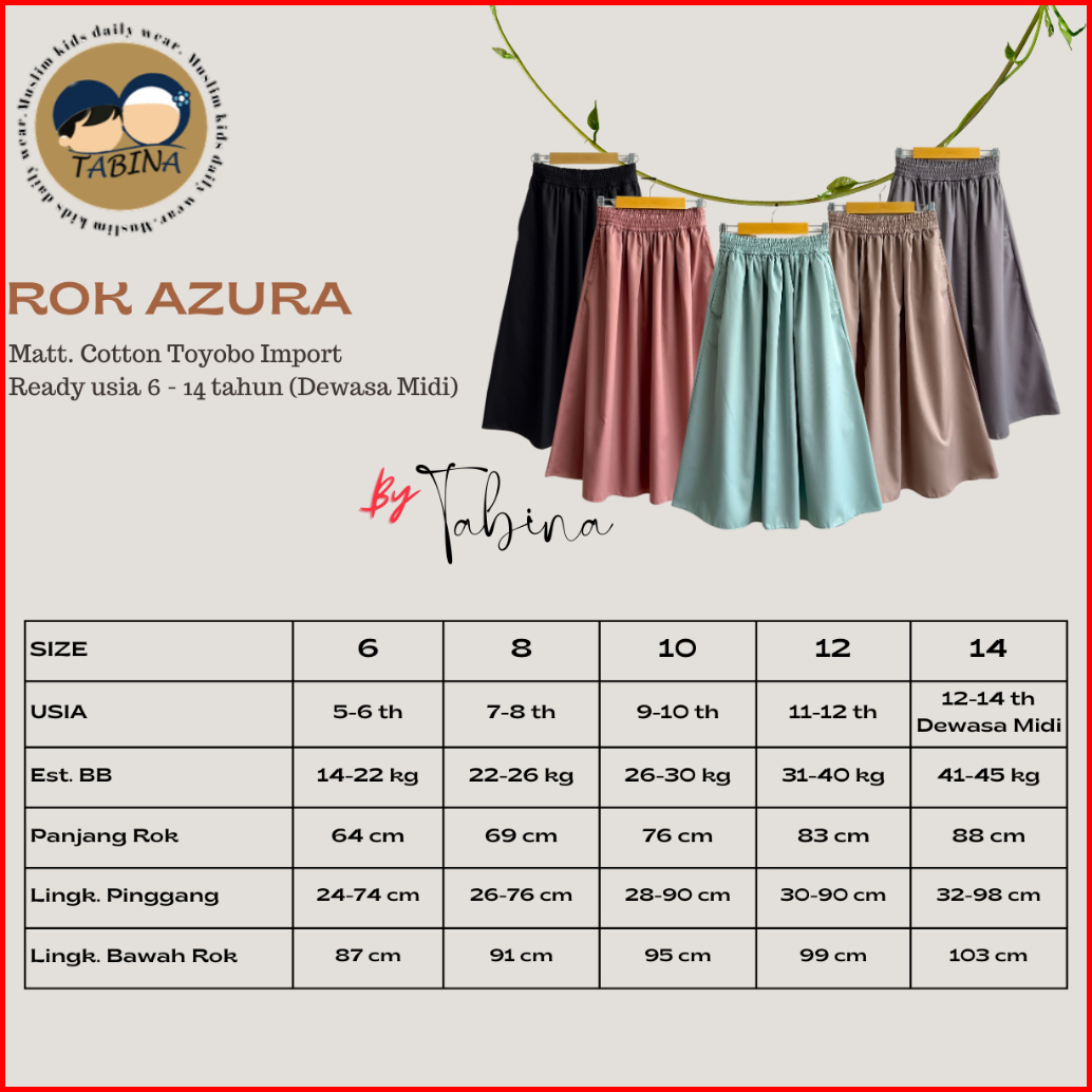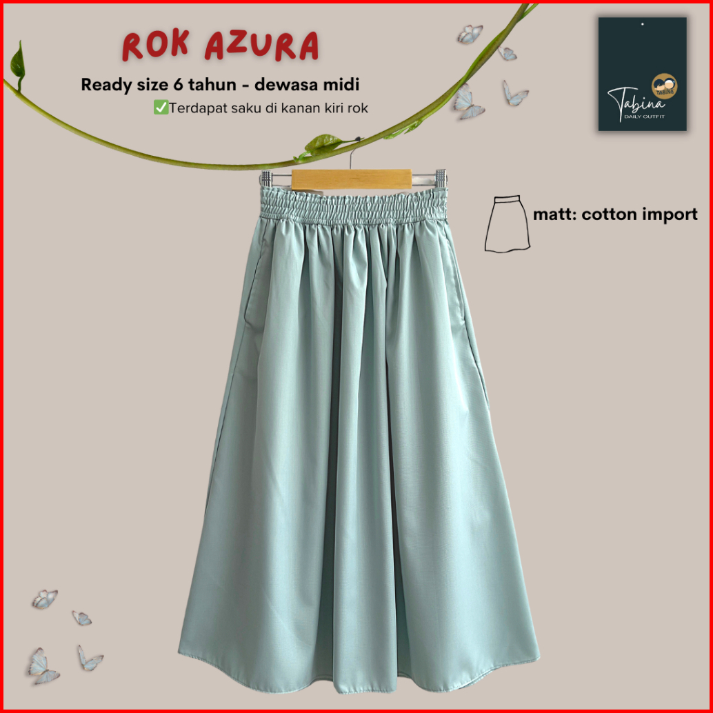 Tabina Rok Anak Dan Remaja Seri Azura Bahan Katun Toyobo Import Usia 6 Tahun - Midi Dewasa