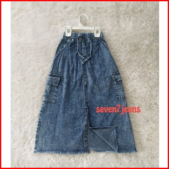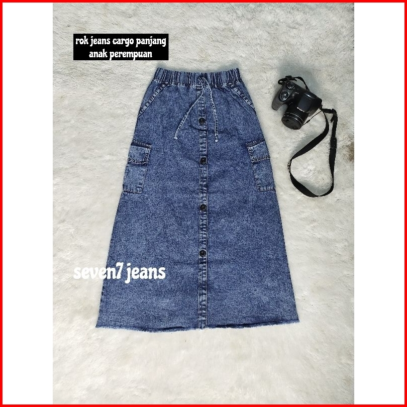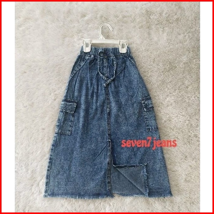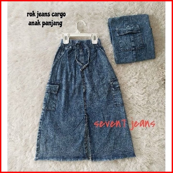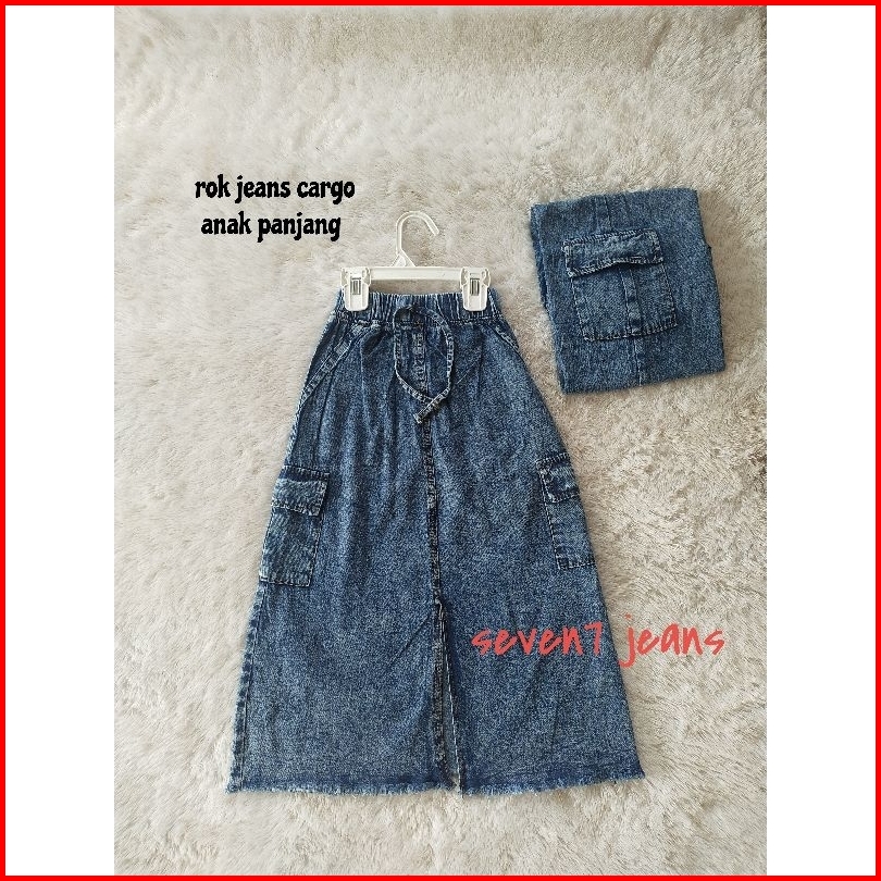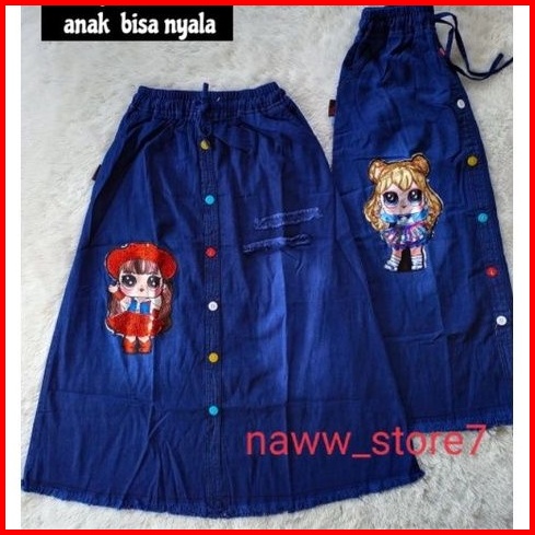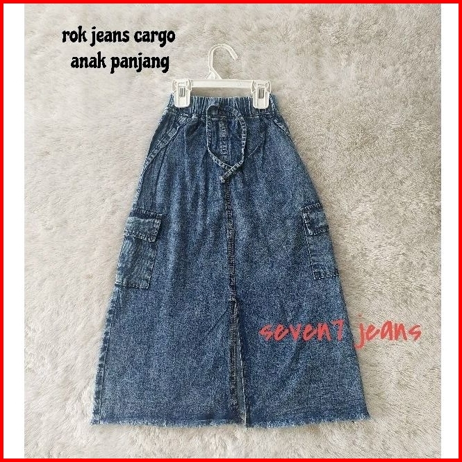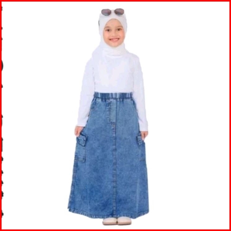 Rok Jeans Cargo Anak Panjang Saku Samping Lol Led Usia 2-9thn Rok Jeans Anak Perempuan