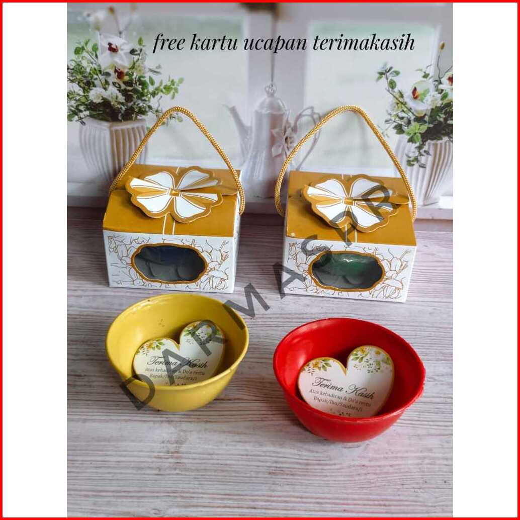 Isi 100 Souvenir Mangkok Sambal Bulat Warna Warni Kemasan Box Cantik Tali