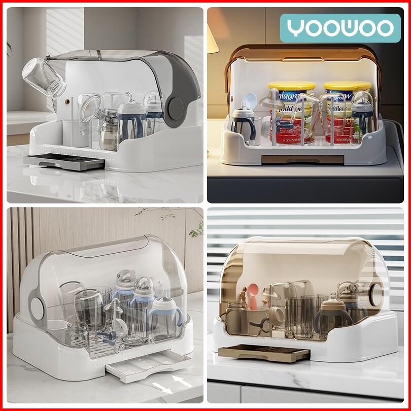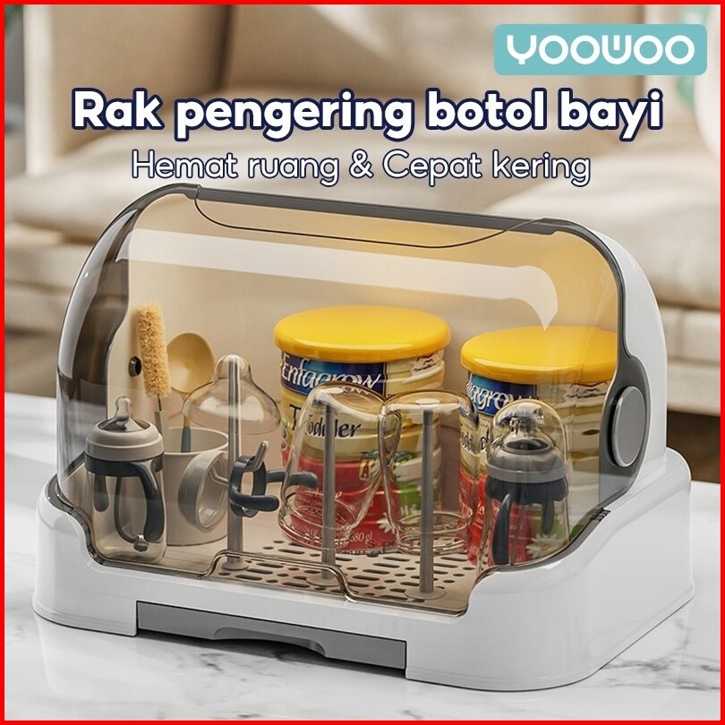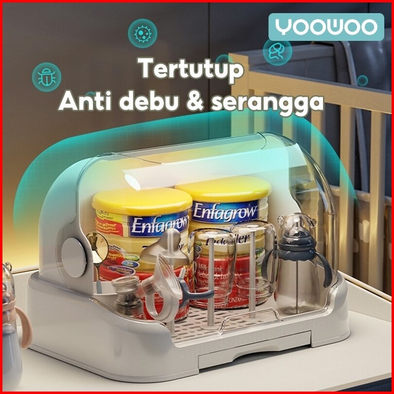 Yoowoo Rak Botol Bayi Rak Pengering Botol Rak Pengering Alat Makan Bayi Tempat Peralatan Makan Bayi Higienis Anti Debu