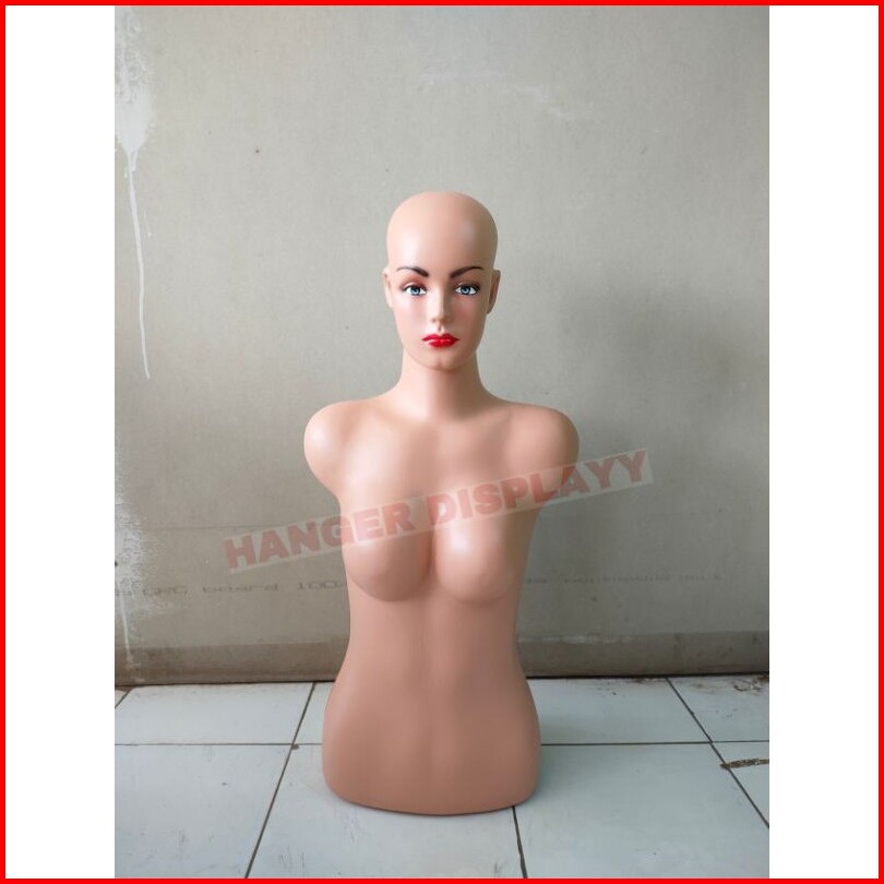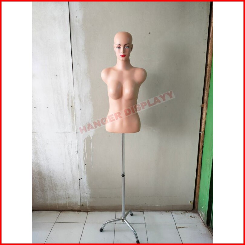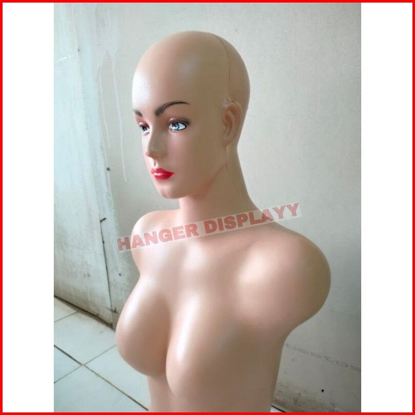 Patung Manekin Body Cewek Dewasa Torso Botak Manekin Wanita Setengah Badan Kaki Besi