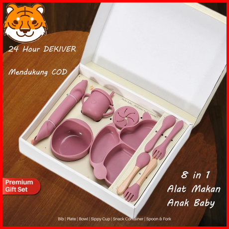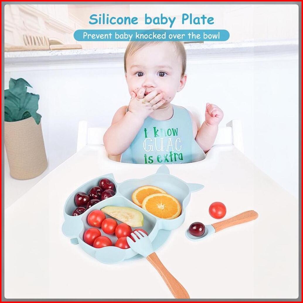 Tiger Baby Set Piring Makan Bayi Silikon - Piring Silikon Bebas Bpa Set Makan Penting