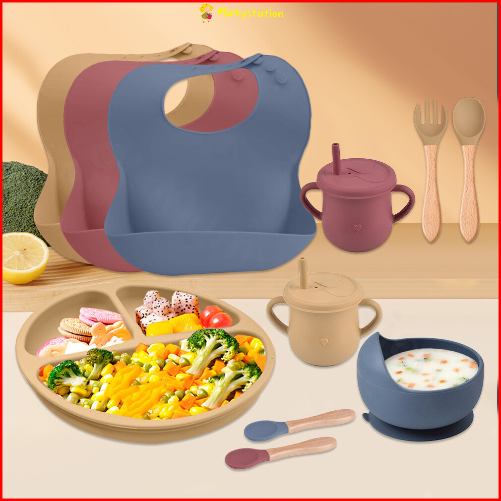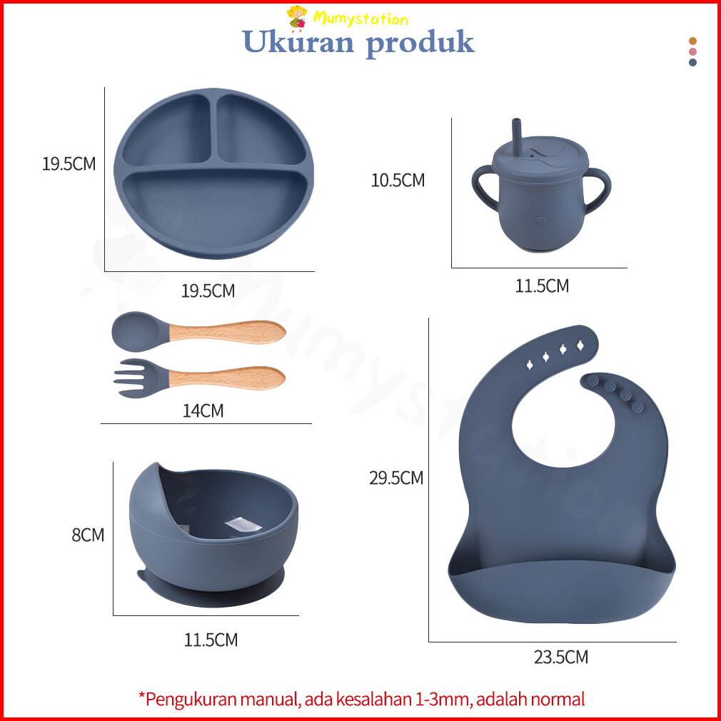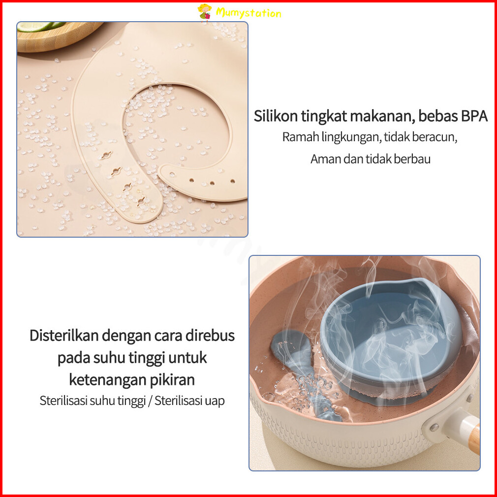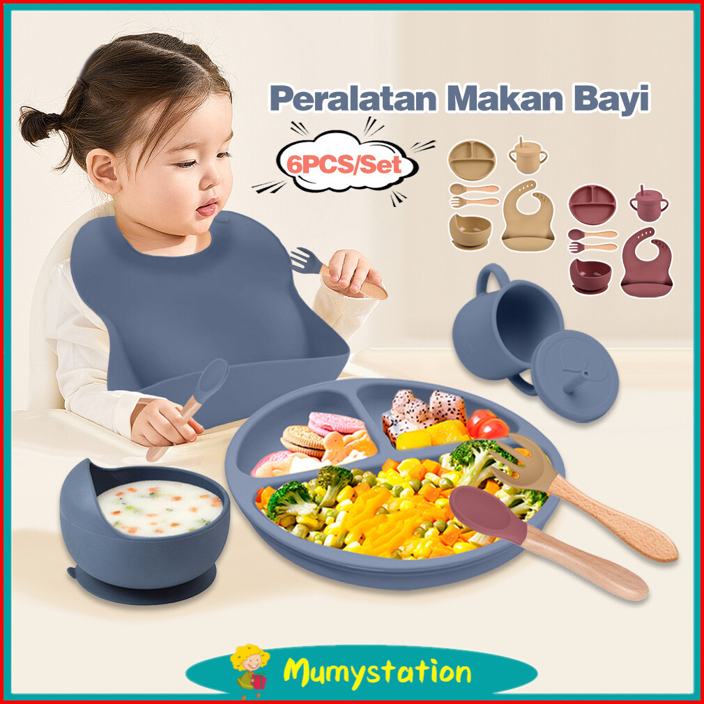 Mumystation 6pcs Set Peralatan Makan Bayi Silicon Celemek Bayi Lengkap Baby Feeding Set Set