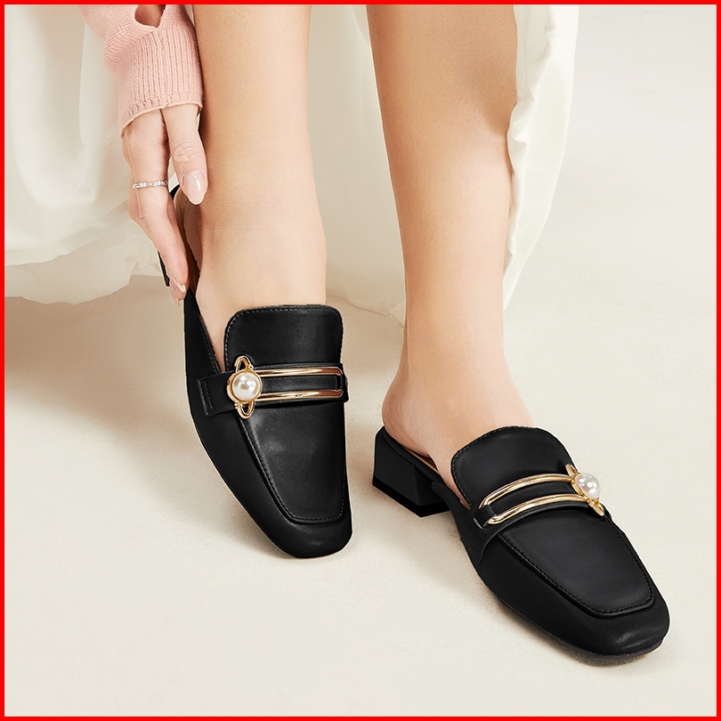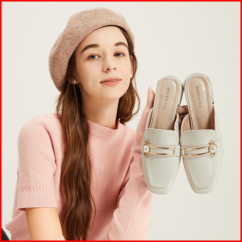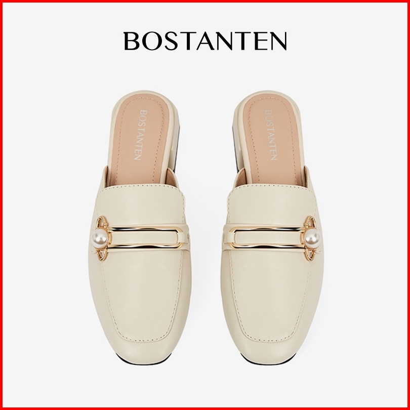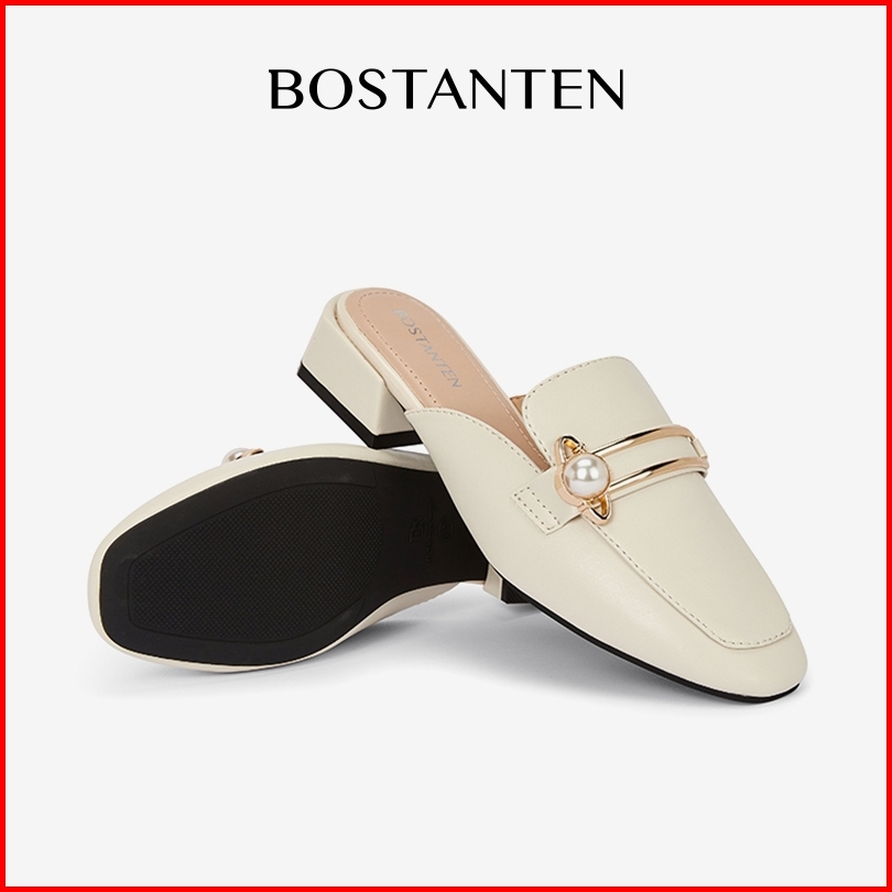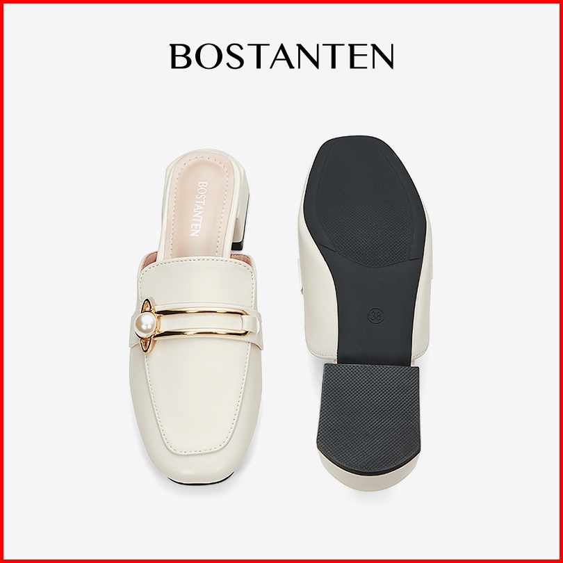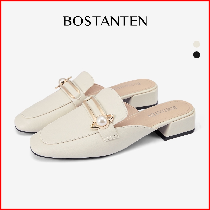 Bostanten Sepatu Hak Tahu Sepatu Mules Flatshoes Heels Sepatu Tunggal Dengan Tumit Berat Wanita Kepala Persegi Sepatu Mu