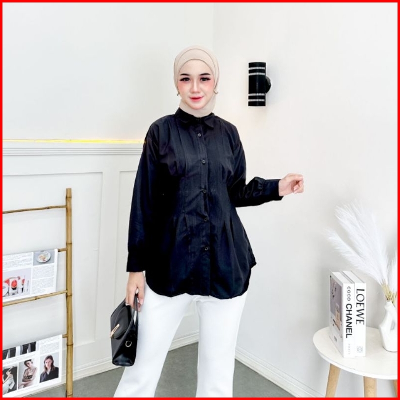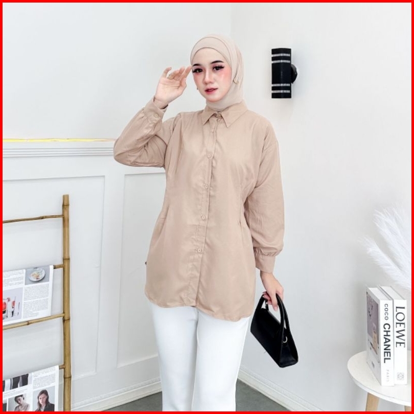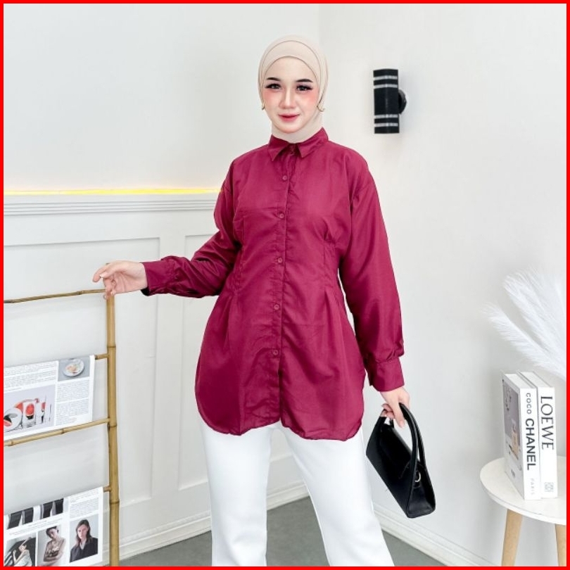 Atasan Luna Top Long Sleeve Kemeja Wanita Katun Premium