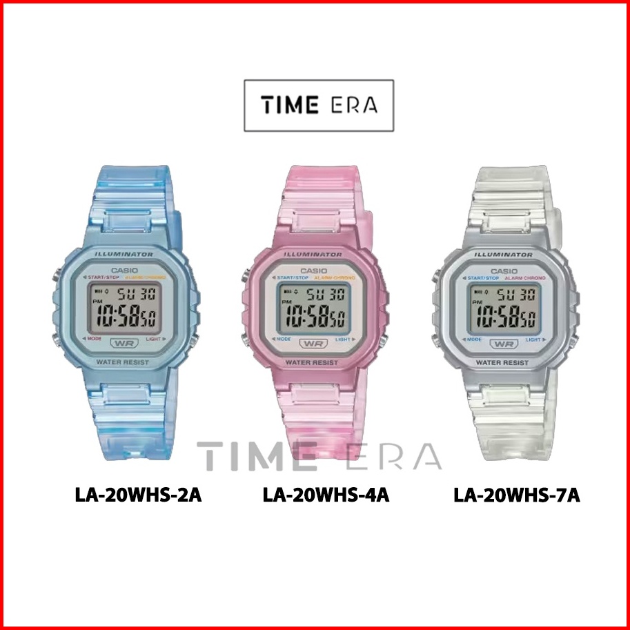 Casio General La20whs-7a 2a La-20whs-7a 4ajam Tangan Wanita Digital Karet Putih Bening Transparan