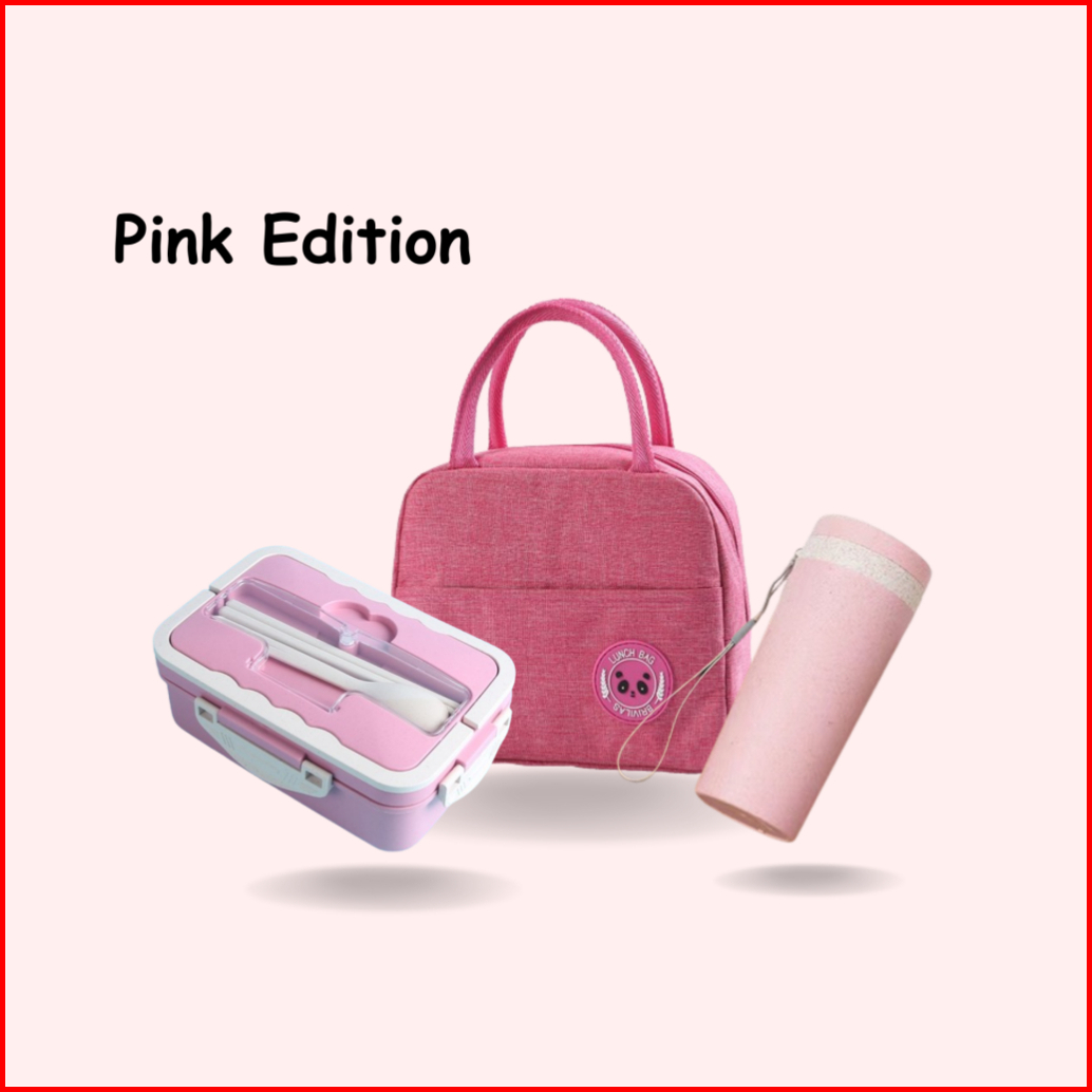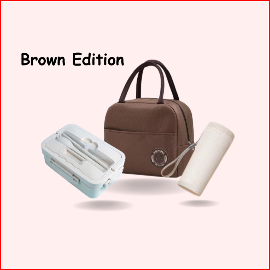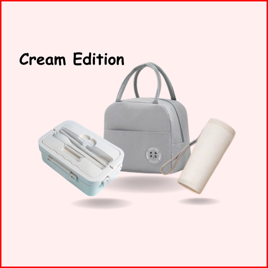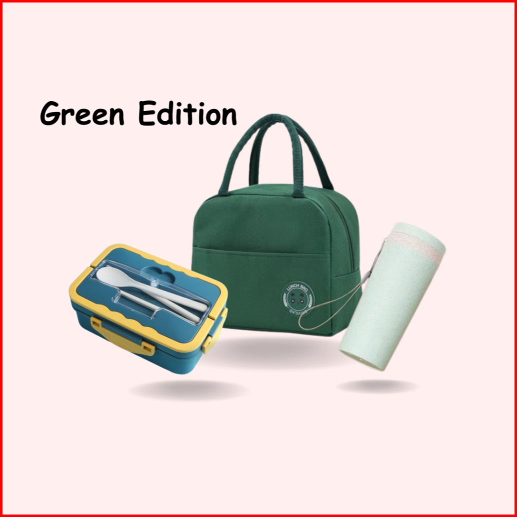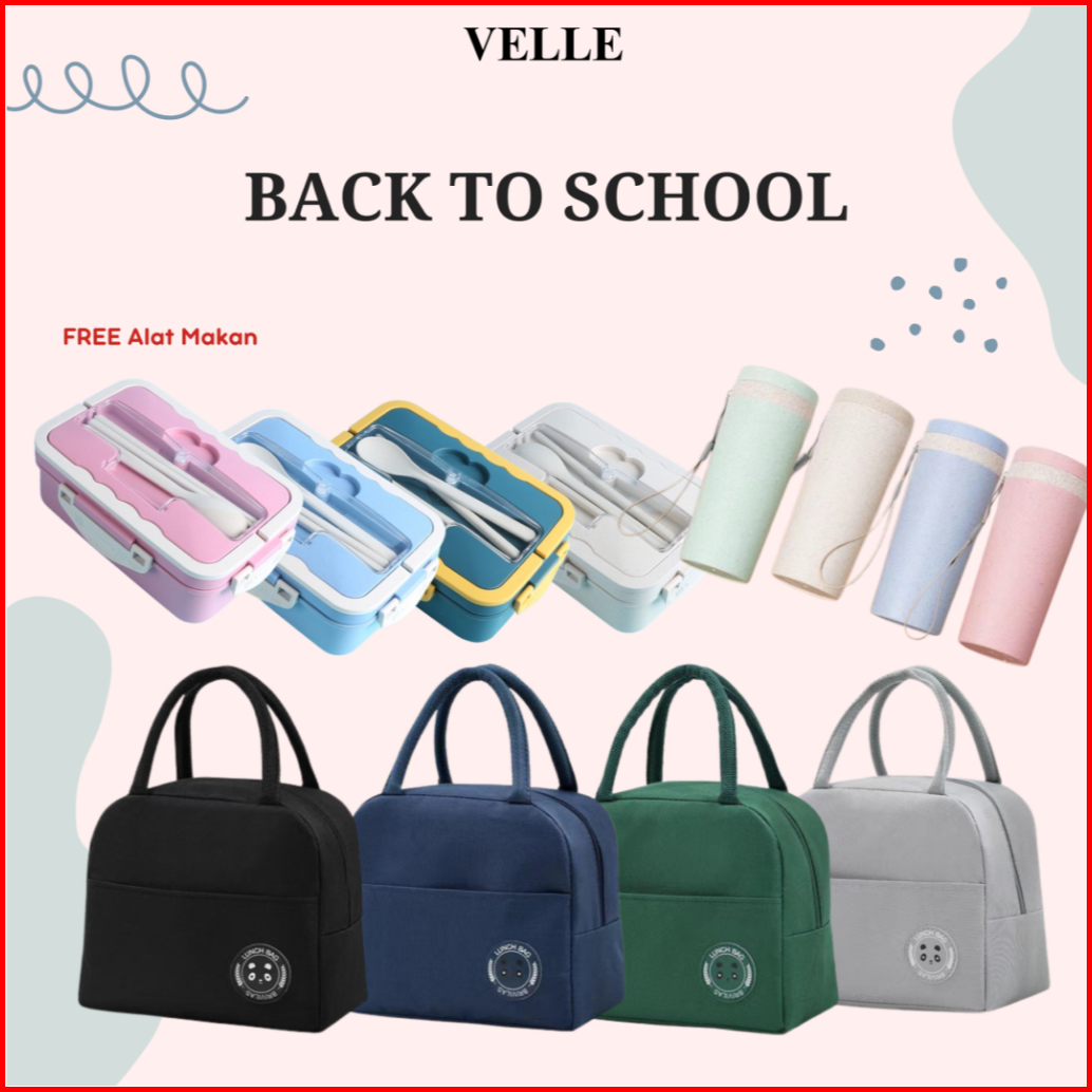 Velle 3 In 1 Kotak Makan Set Lunch Box Kotak Makan 1000ml Cangkir Soup Wheatstraw Anti Panas