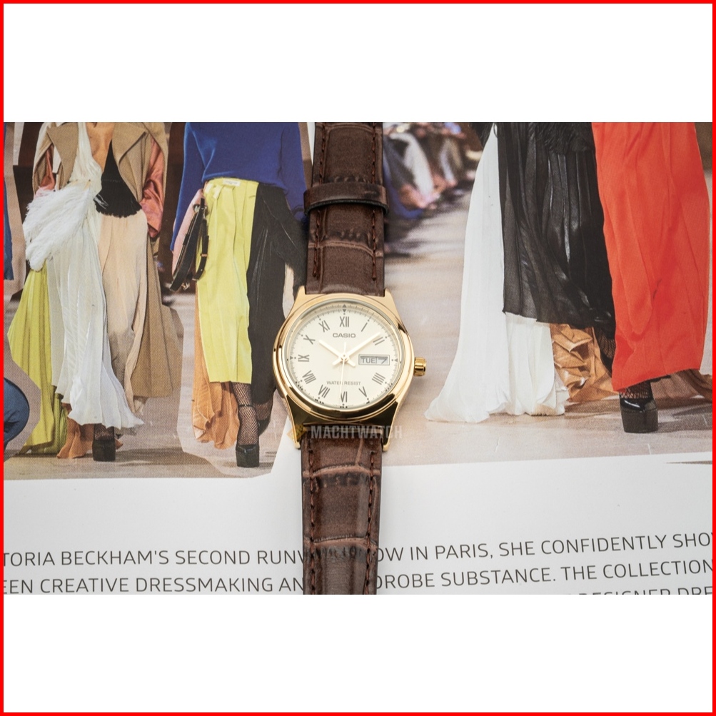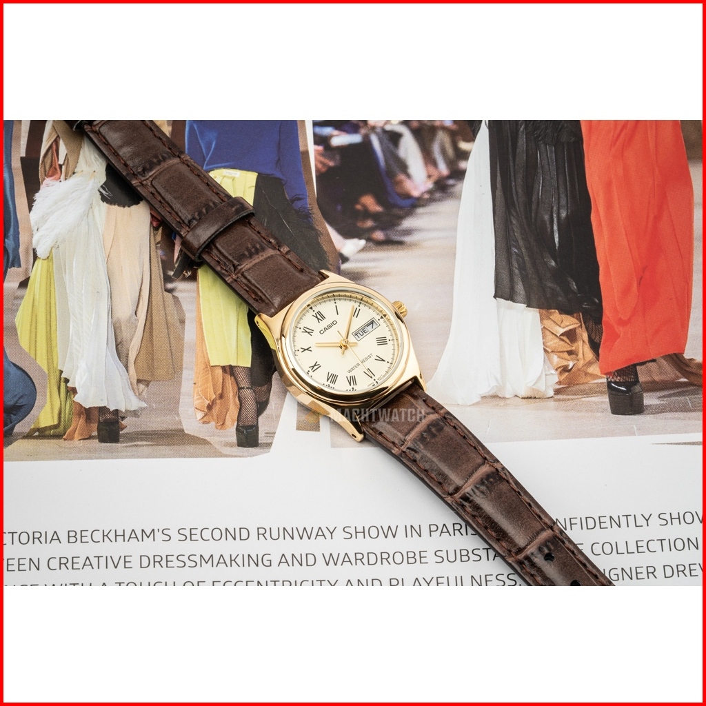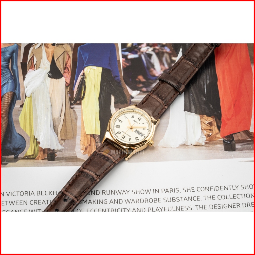 Jam Tangan Wanita Analog Casio Standard Ltp-v006gl-9budf Ltpv006 Ltp-v006g Analog Beige Dial Brown Leather Band