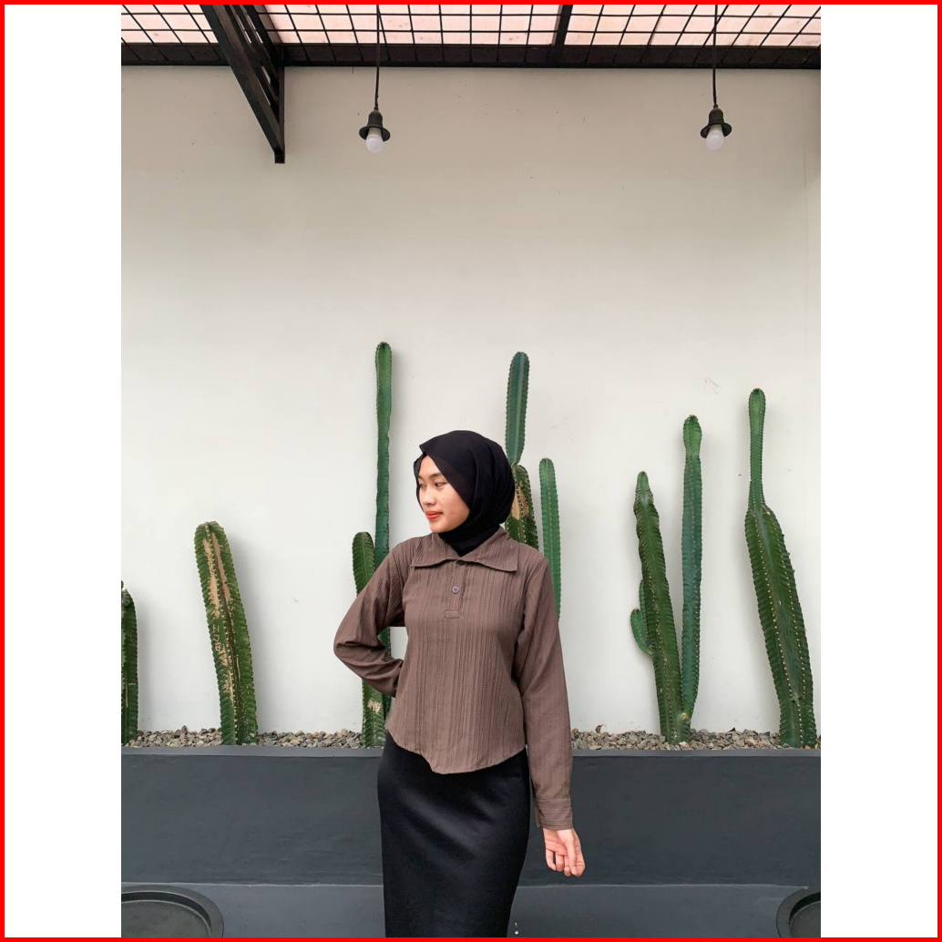 Kemeja Polo Wanita Korean Style Lady Crush Premium Polos Serut Belakang - Atasan Wanita Keren - Atasan Cewek Crop Korea