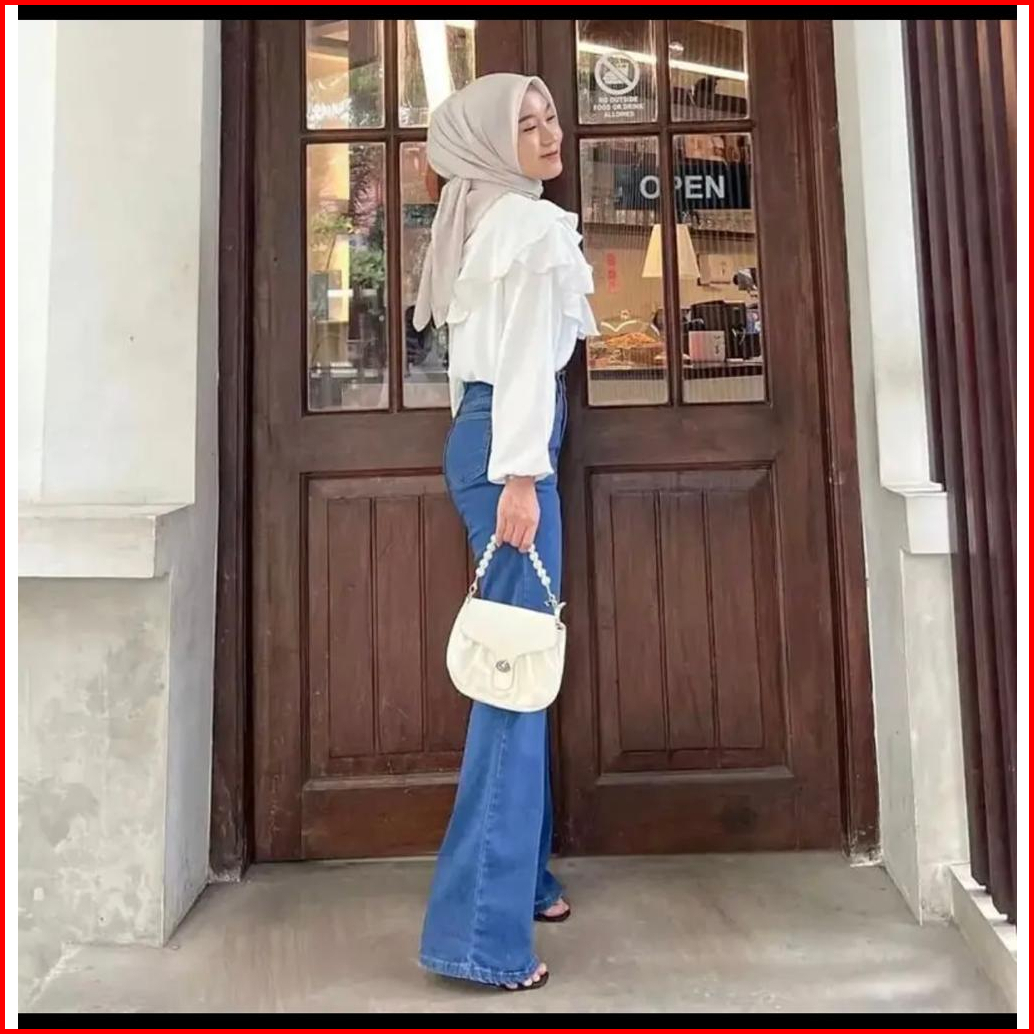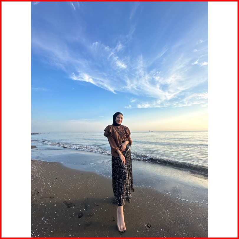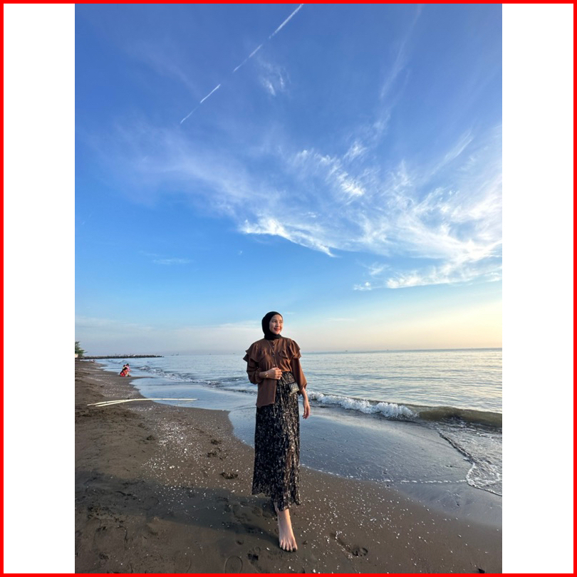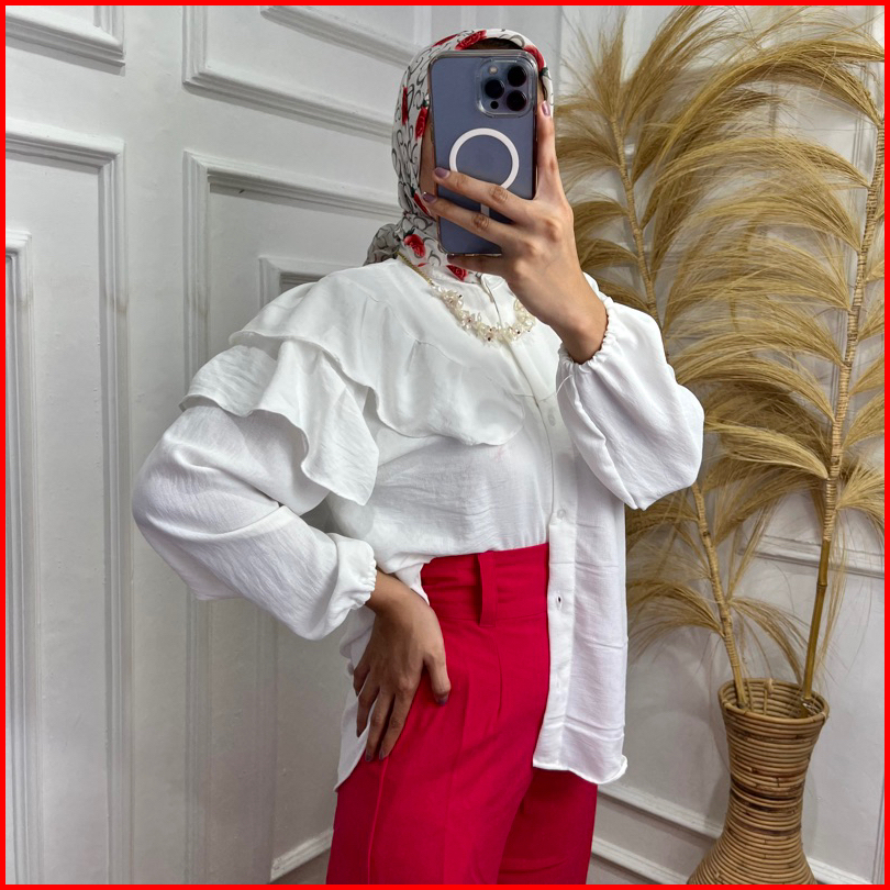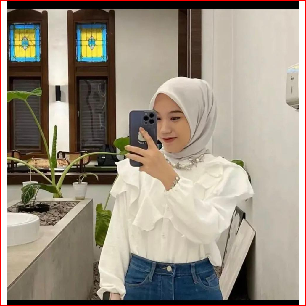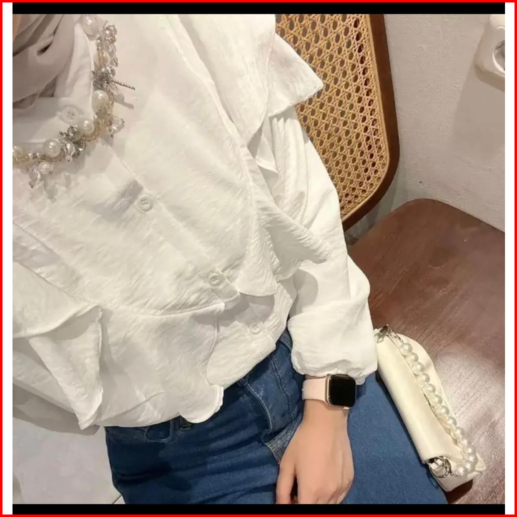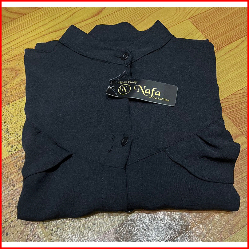 Nafa Blouse Atasan Wanita Kerah Sanghai- Baju Ruffle Polos Tangan Panjang Cringkle Rafella - Atasan Kancing Style Airflo