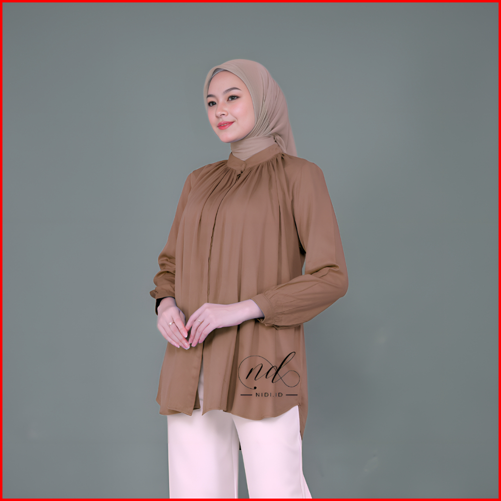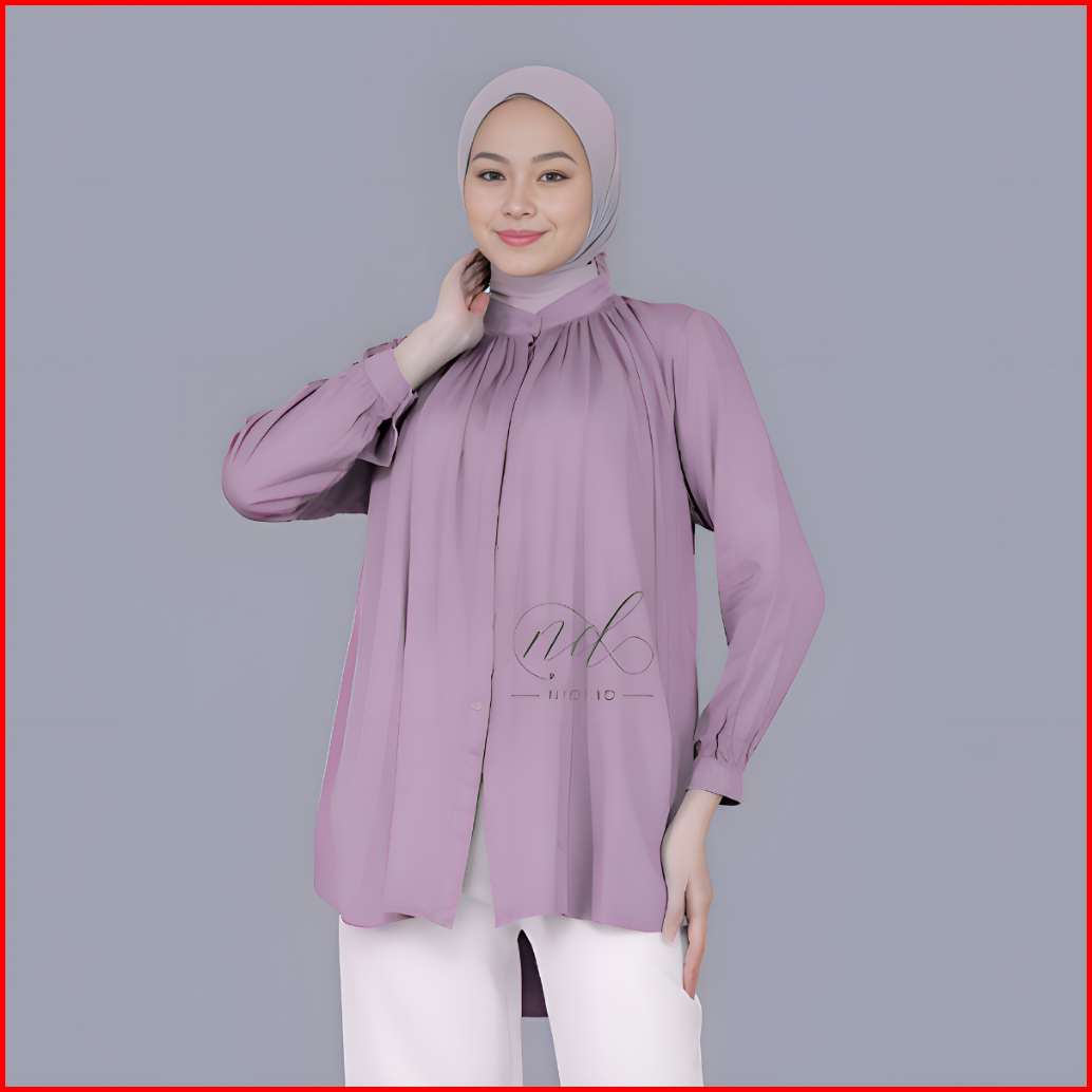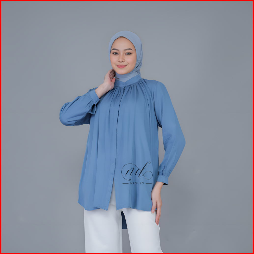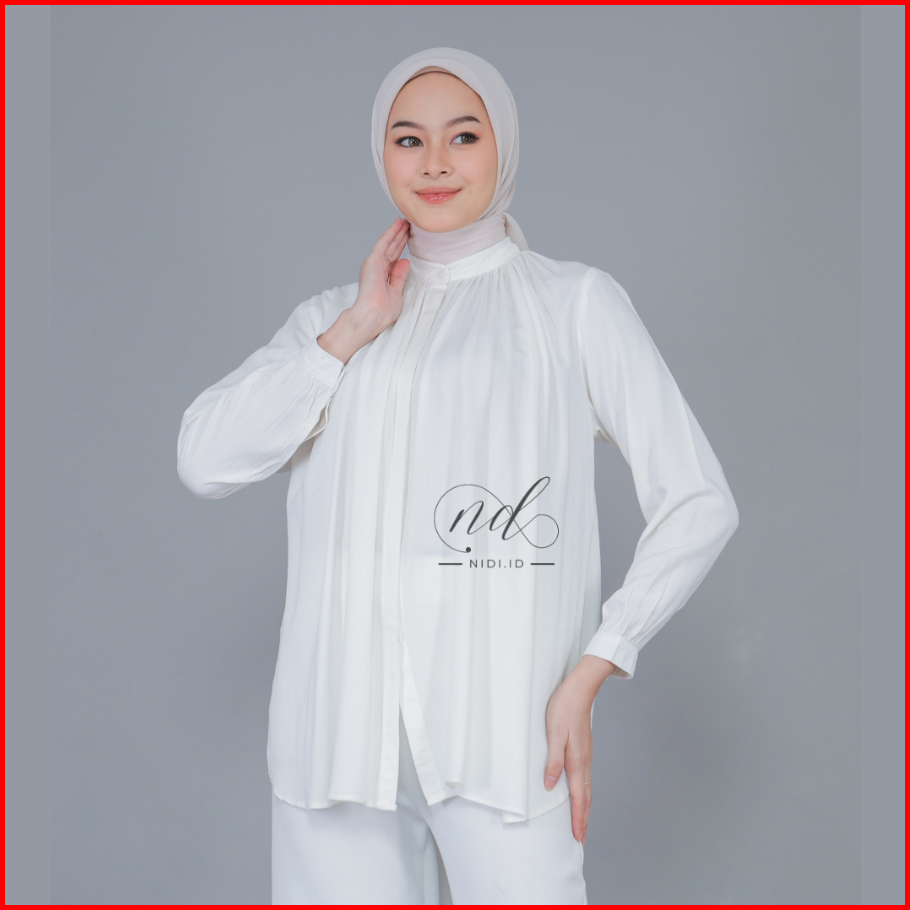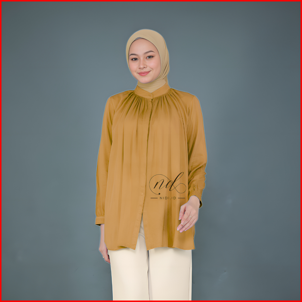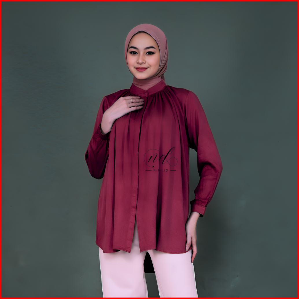 Nidi.id - Terlaris Kemeja Wanita Basic Atasan Muslim Lengan Panjang Baju Formal Kemeja Kerja Blouse Kantor Kerut Ottd Te