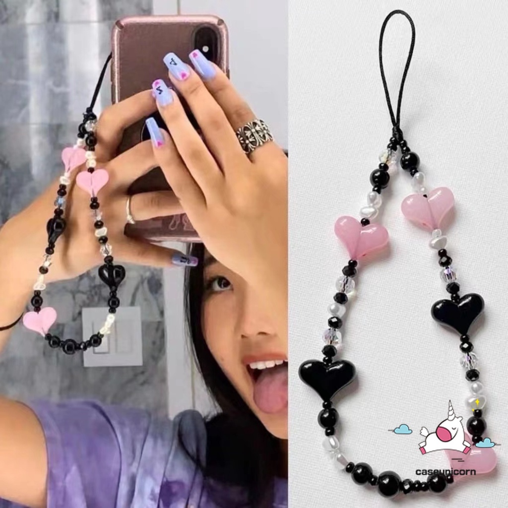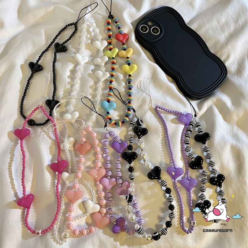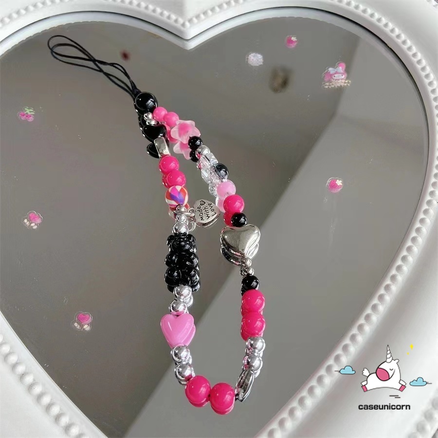 CASEUNICORN BERBAGAI KARTUN LUCU CINTA HATI BUNGA WARNA-WARNI BEADS GELANG UNIVERSAL CHAIN PHONE ROPE STRAPSUMMER