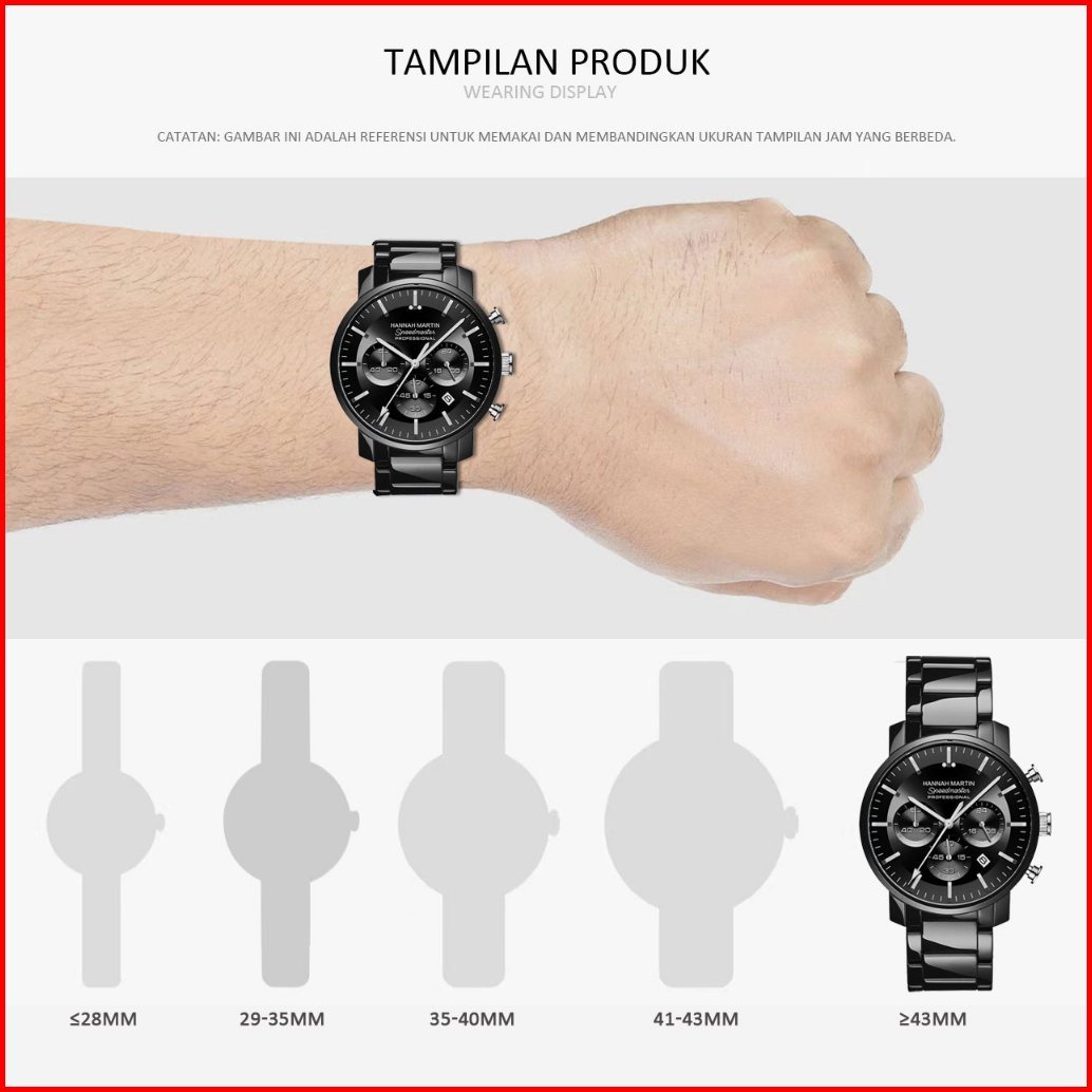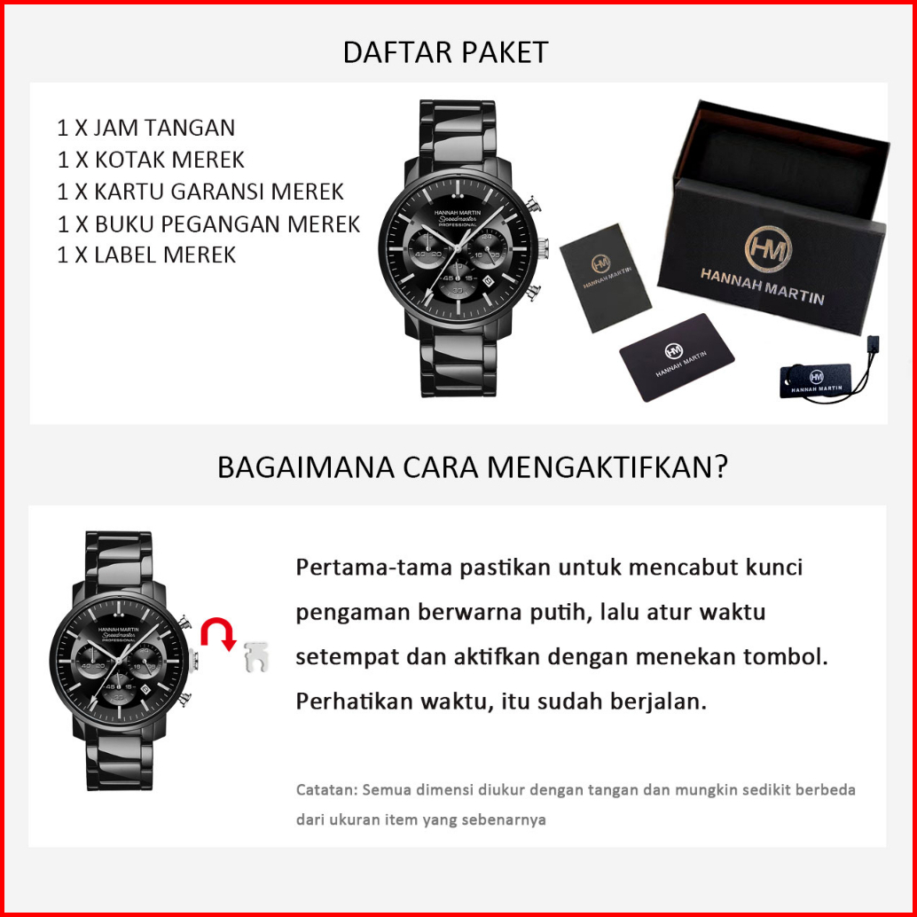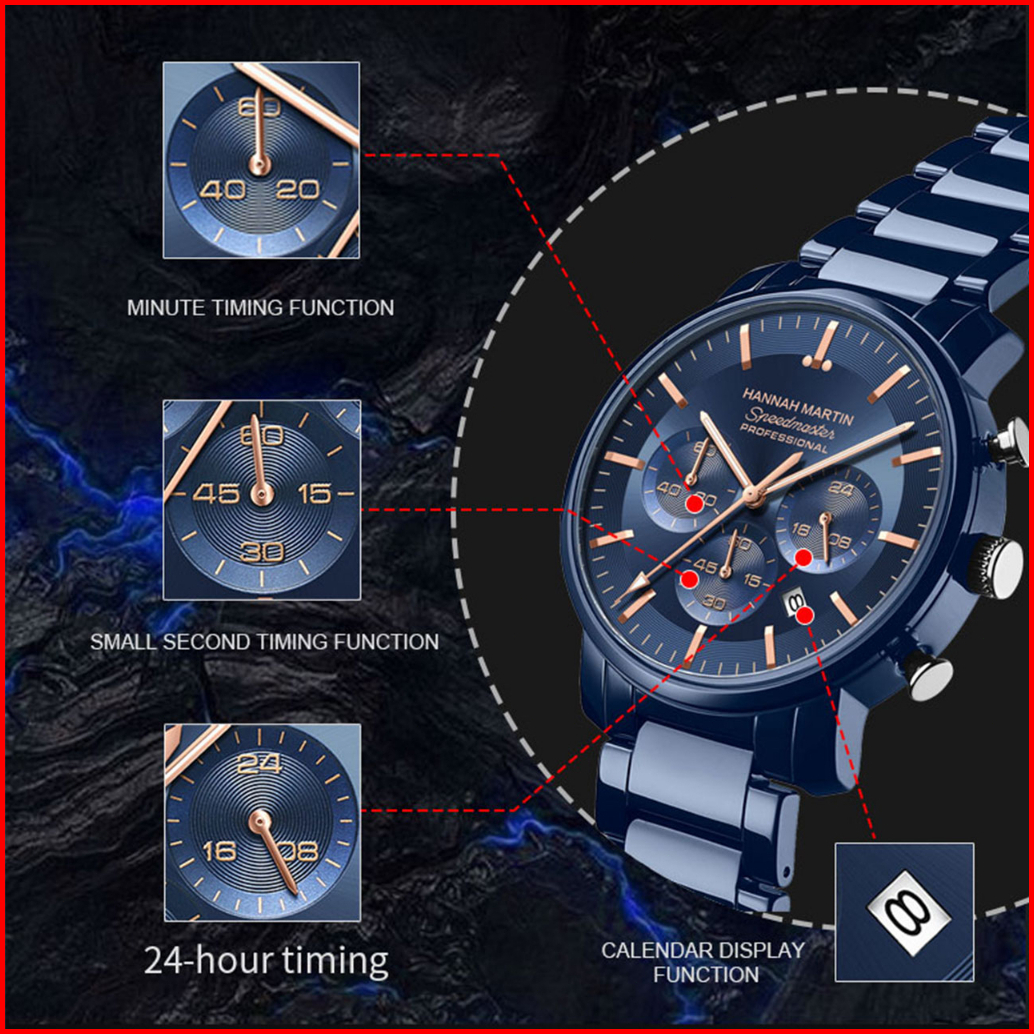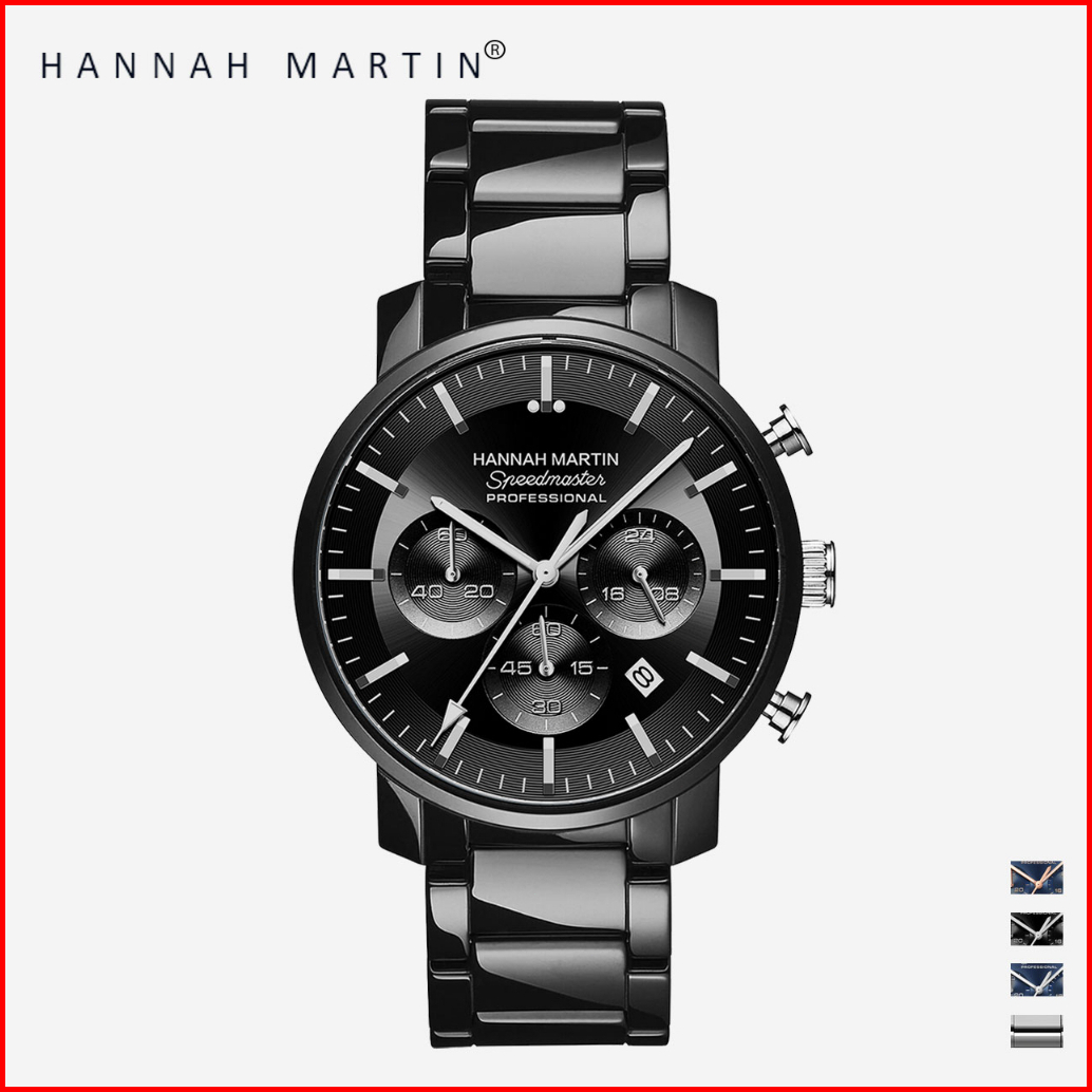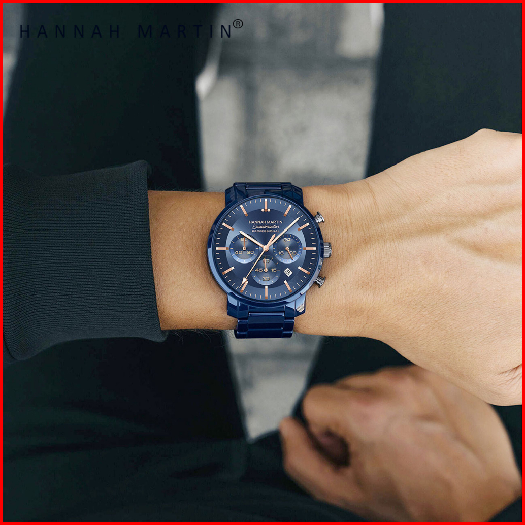 Hannah Martin Jam Tangan Pria 100 Original Keren Tahan Air Cowok Kronograf Quartz Analog Laki Jam Hitam Biru 113