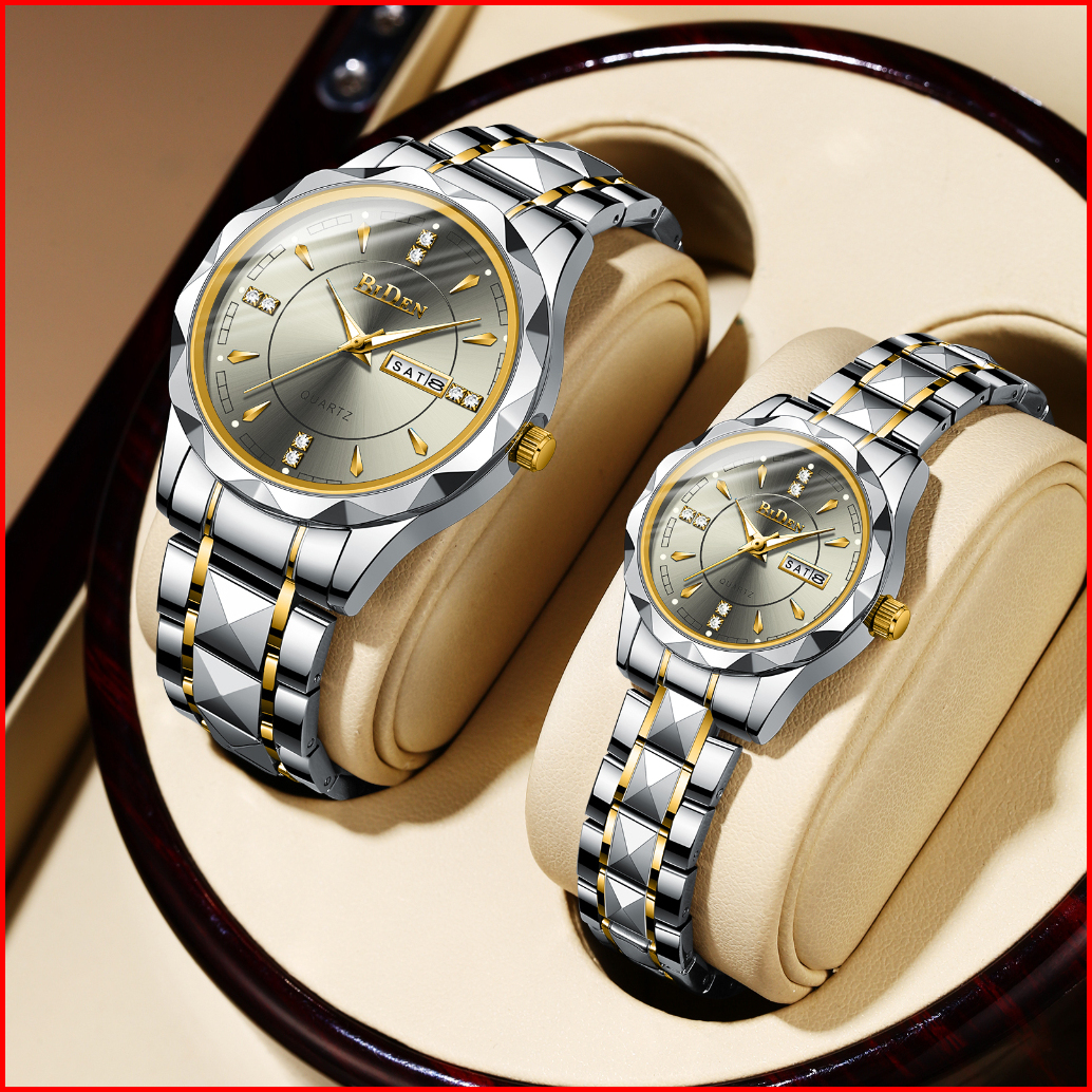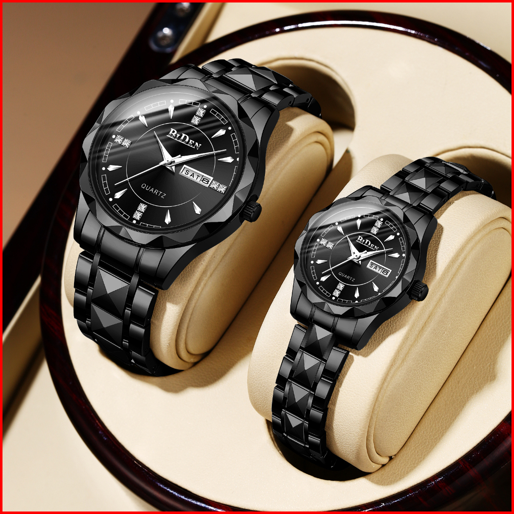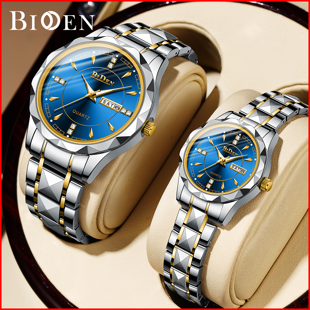 Biden Jam Tangan Couple Anti Air Original Pasangan S001 Tali Stainless Steel Kemewahan Kasual Wanita Pria 2 Buah