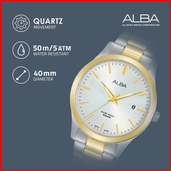 Alba Jam Tangan Pria As9m32 As9m32x1 Quartz Silver White Dial Two Tone Silver- Stainless Steel Strap Watch