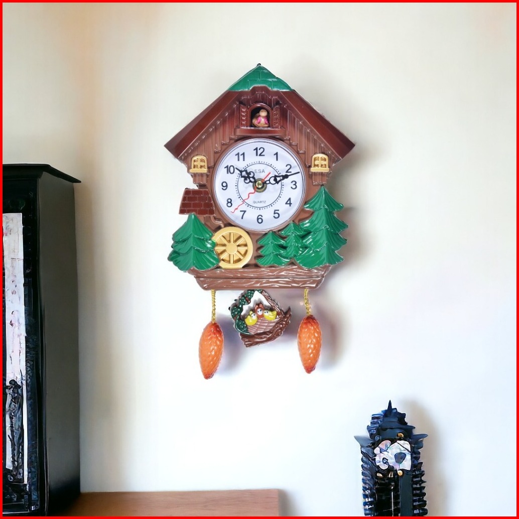 Jam Dinding Bandul Model Cuckoo Kikuk 21 Cm Warna Coklat Free Baterai