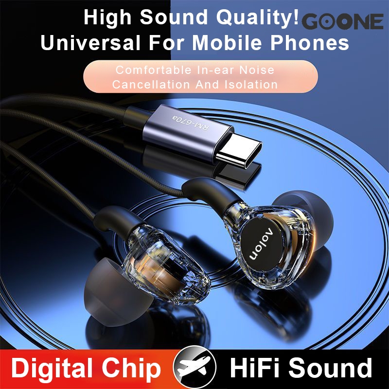 GOONE RM670 WIRED TYPE C GAMING SUPER BASS USB C STEREO ORIGINAL EARPHONES EARFON WITH VOLUME CONTROL BUILT IN MIC