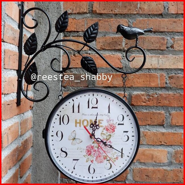 Jam Dinding Gantung Import Model Shabbychic Dua Sisi Bolak-balik Jam Besi