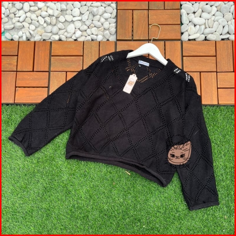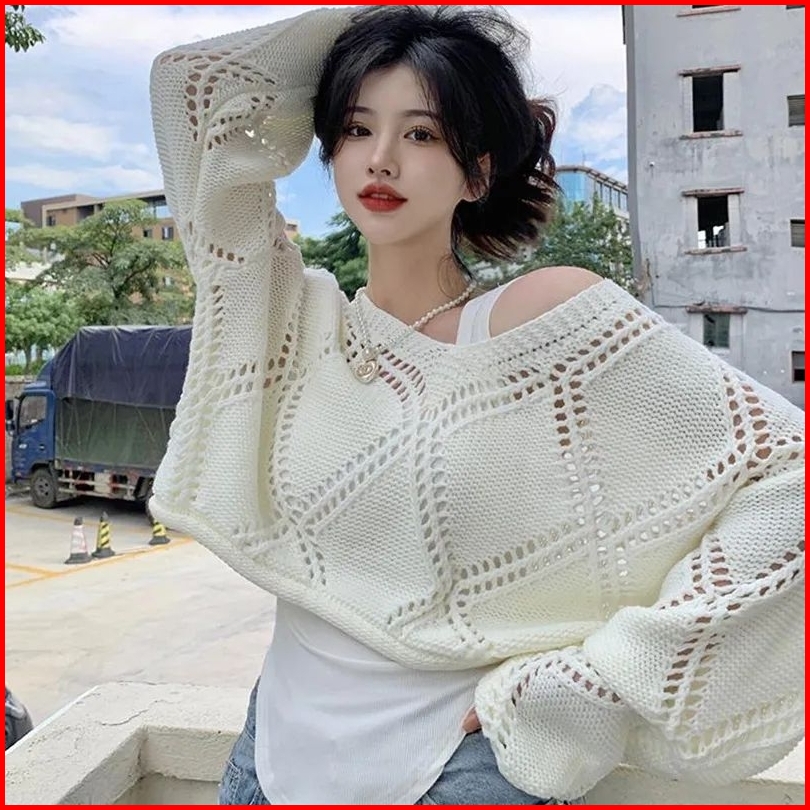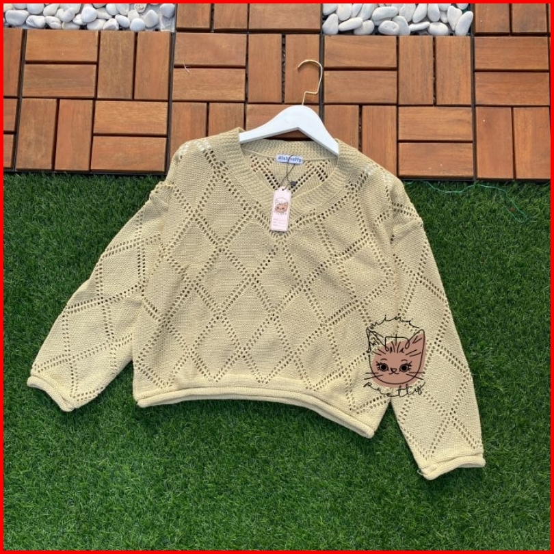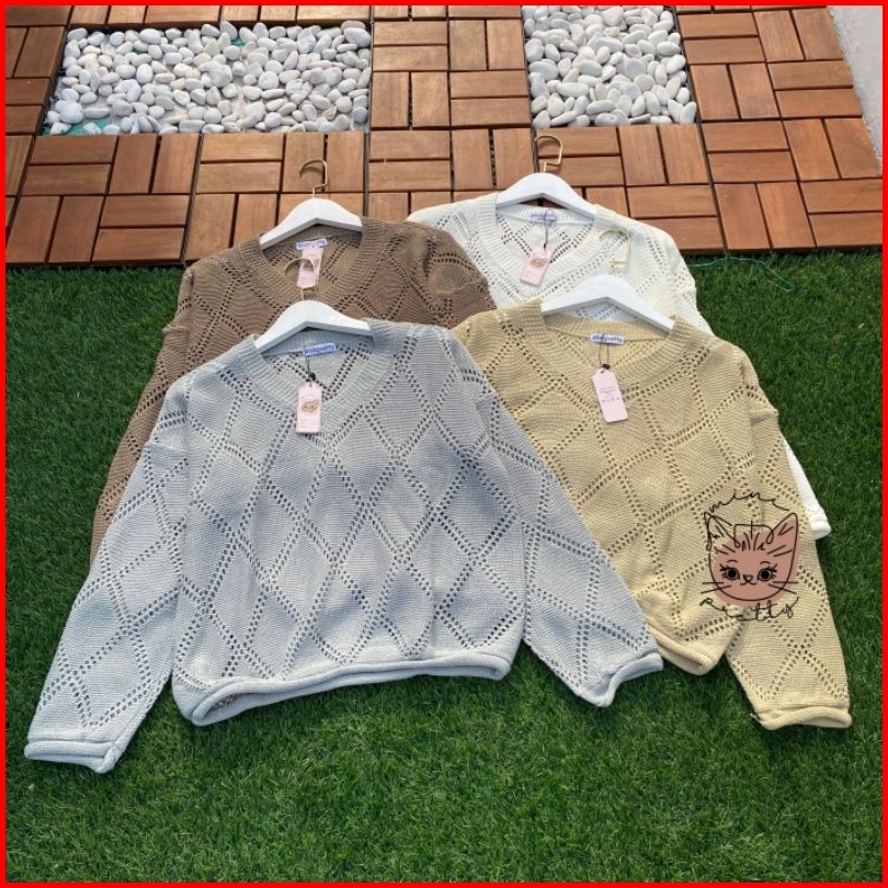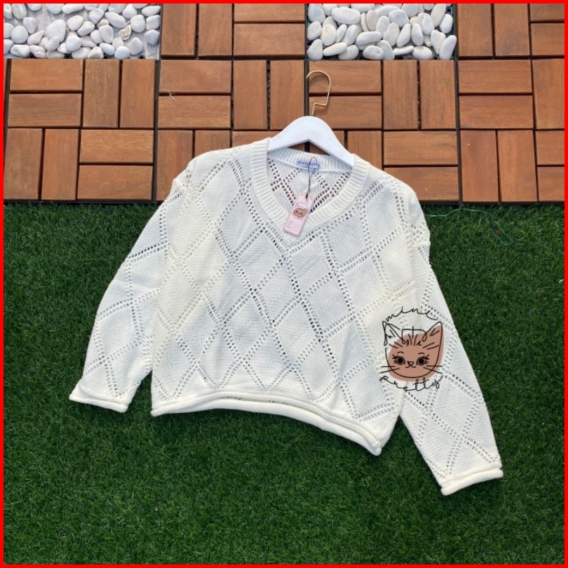 Atasan Rajut Bolong Jaring Sido Ketupat Hollow Sweater