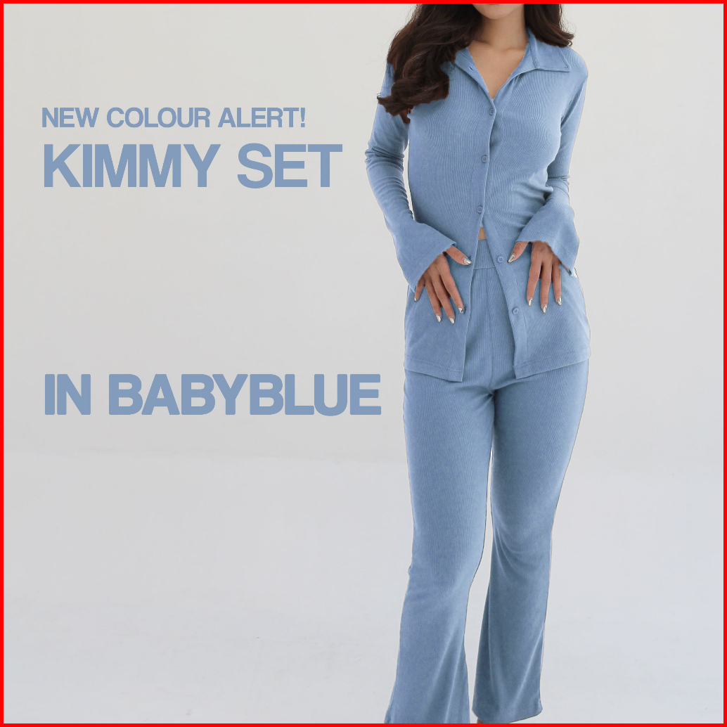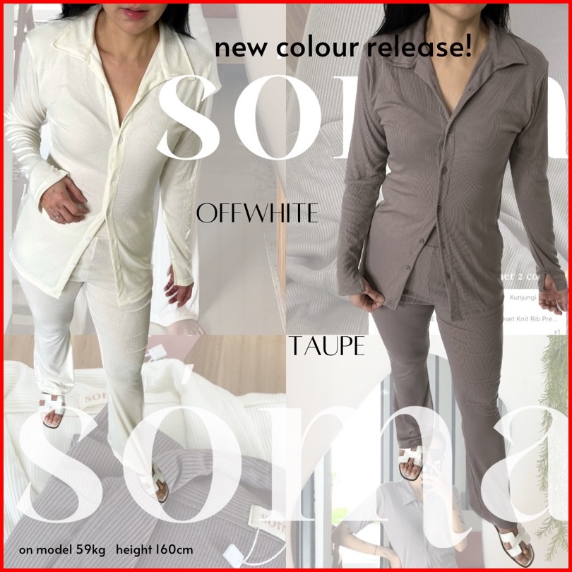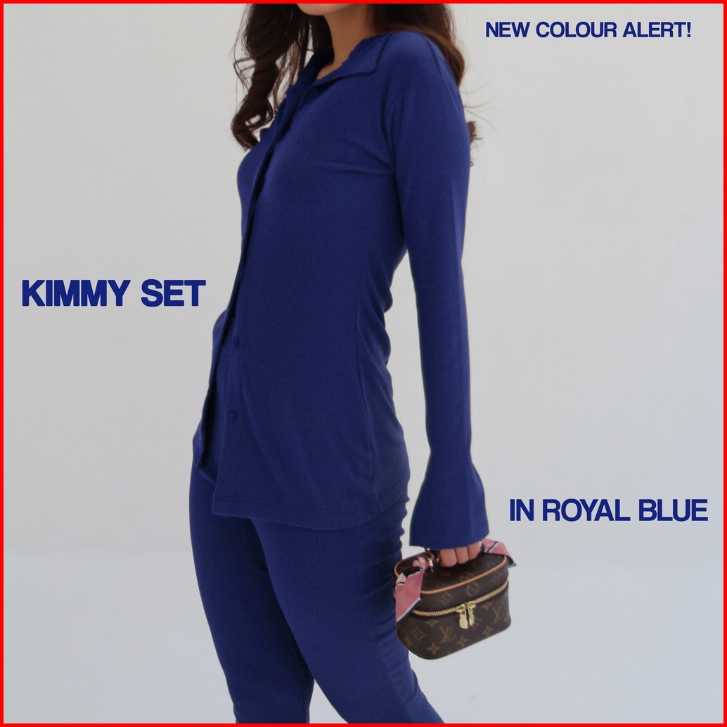 Kimmy Set Setelan Wanita Long Sleeves Oneset Knit Rib Premium Shirt Pants Baju Set Celana Highwaist Soma
