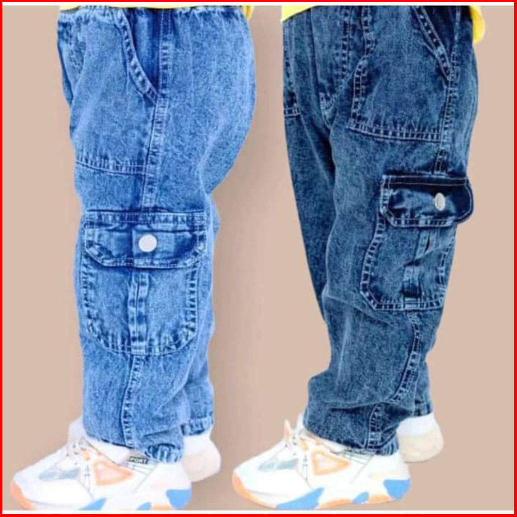 Celana Panjang Anak Bahan Jeans Snow Blue Snow Black Umur 1 2 3 4 5 6 7 8 Bawahan Cargo Unisex Populer Terlaris Masakini