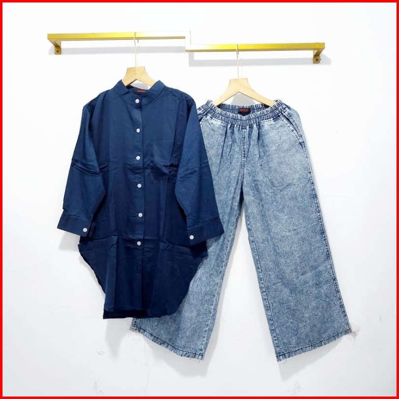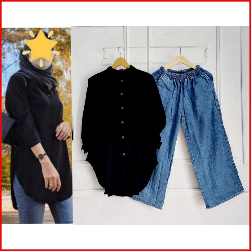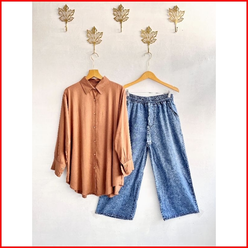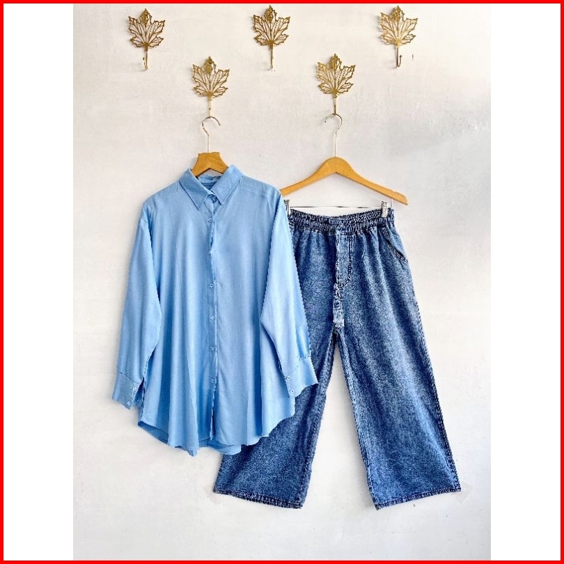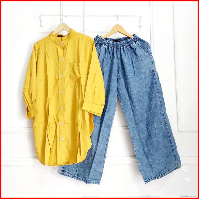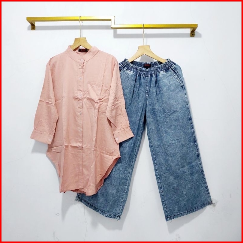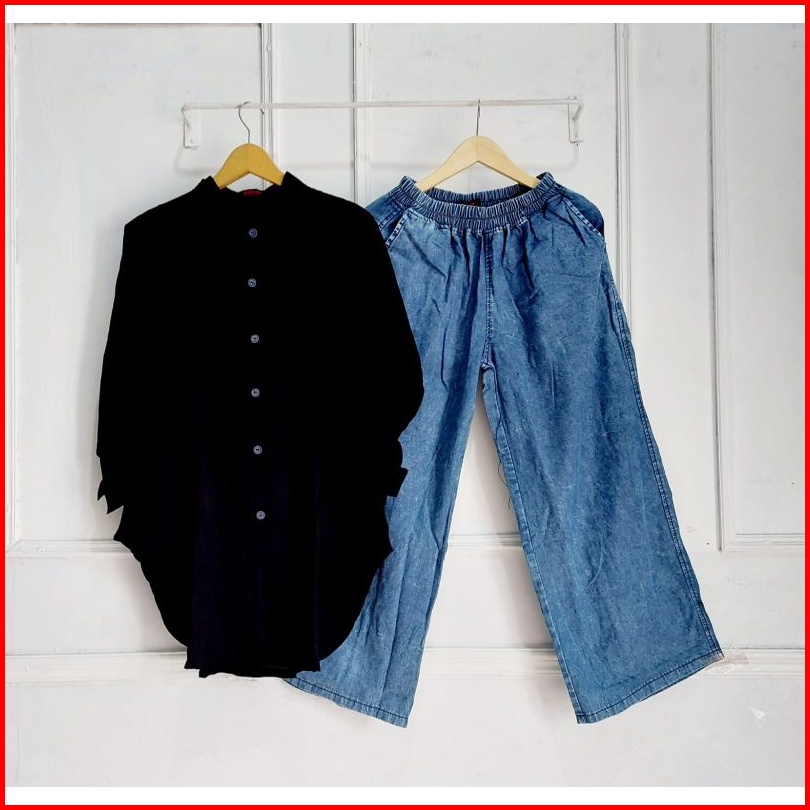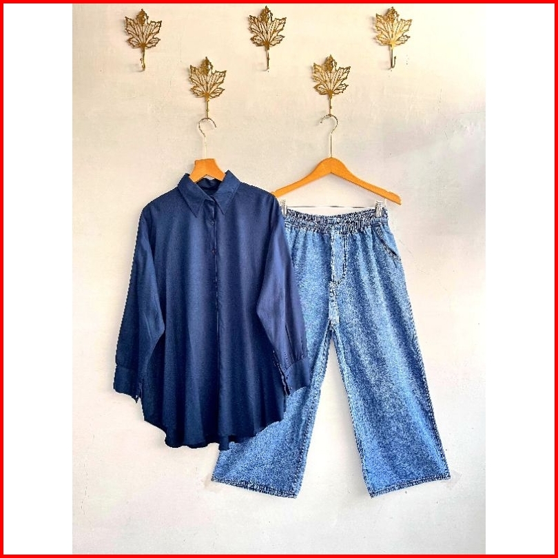 Kulot Jeans Set Kemeja Rayon Jumbo Xl Setelan Kulot Bb 70 Set Wanita Xl