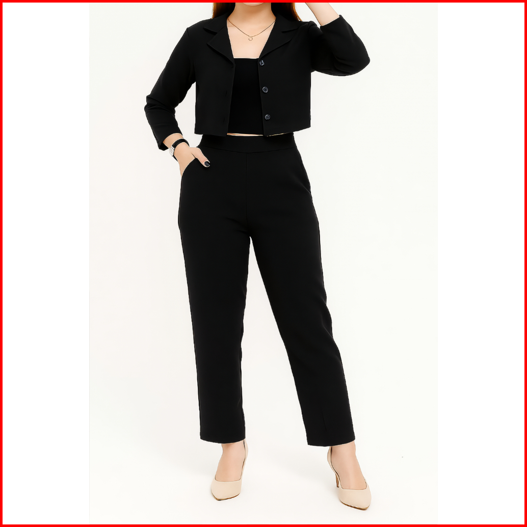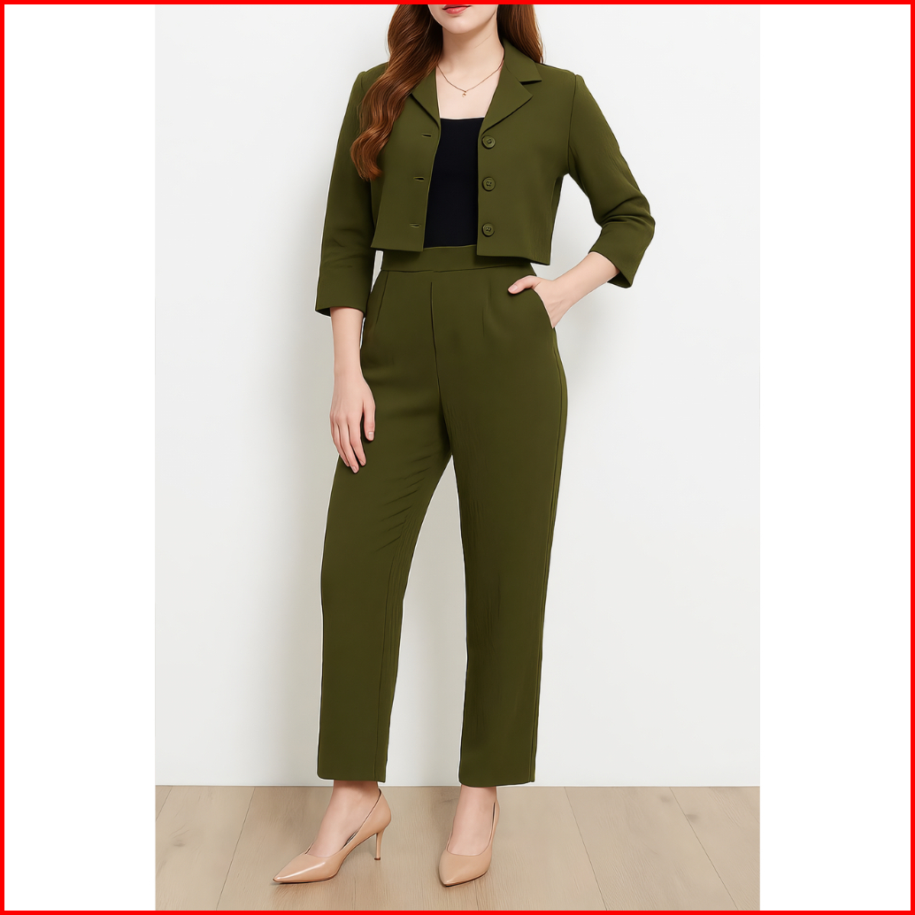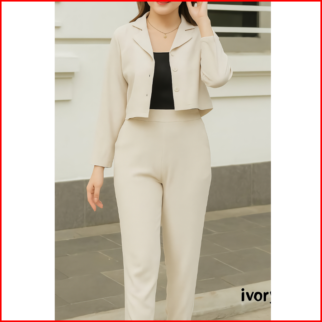 Oneset Kemeja Crop Polos Wanita Atasan Dan Celana Highwaist Warna Dusty