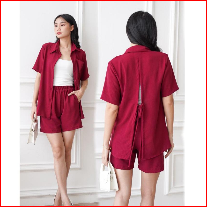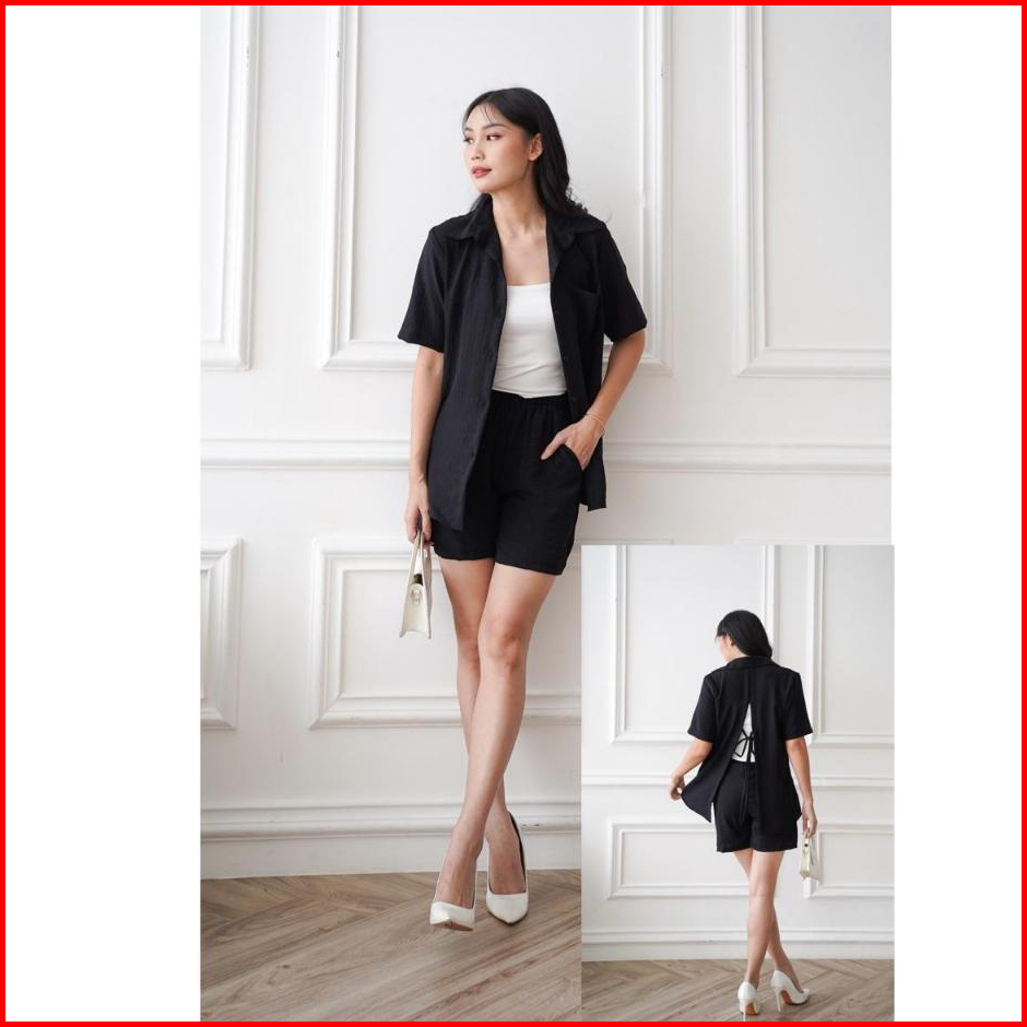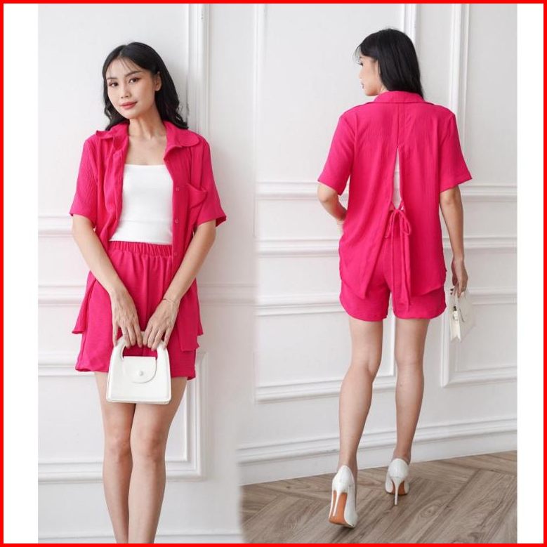 Toply Shop Setelan Kemeja Celena Pendek Hotpans Cey Krinkle Setelan Wanita Korean Style
