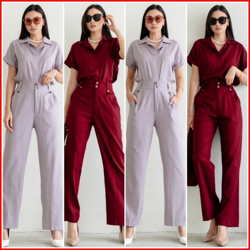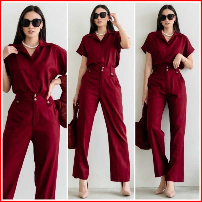 Sale Best Seller Recommended Premium Martha 2 In 1 Twill Set Office Casual Set Collar Shirt With Long Pants Setelan Keme