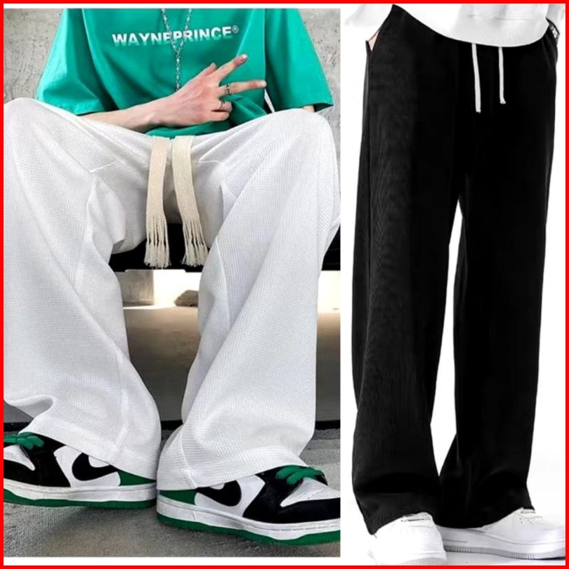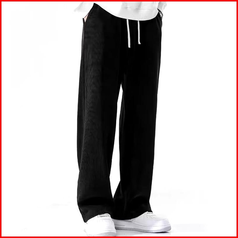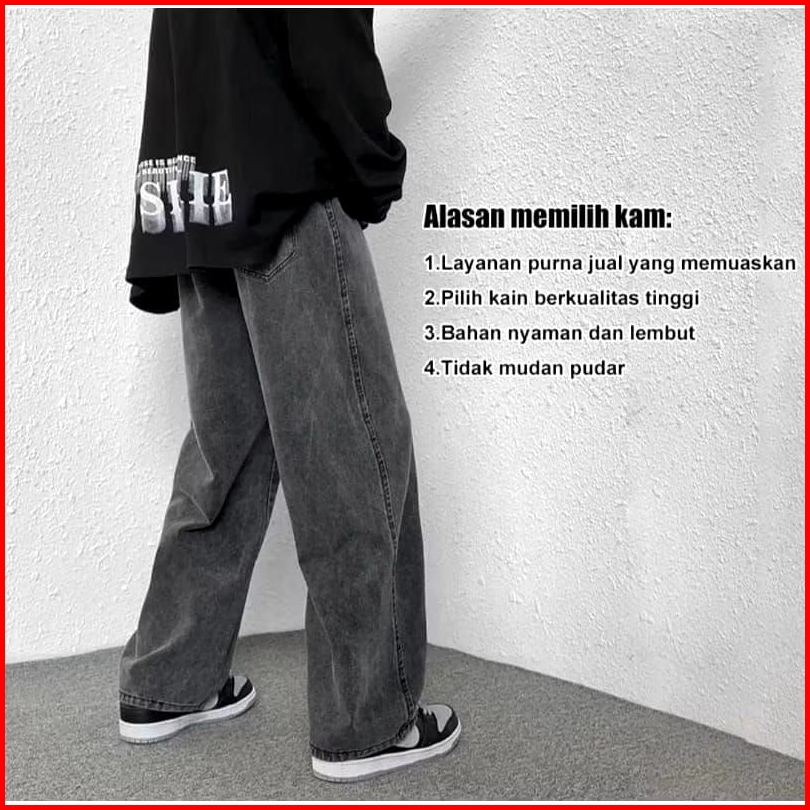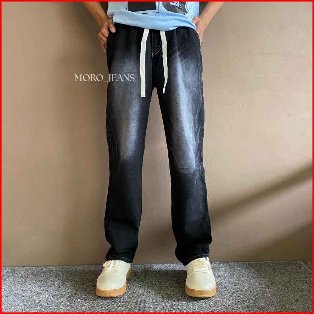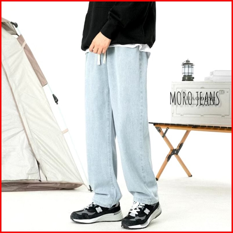 Celana Jeans Pria Celana Panjang Pria Pinggang Karet Korean Style Straight Jeans Santai Longgar Pria Oversize Celana Den