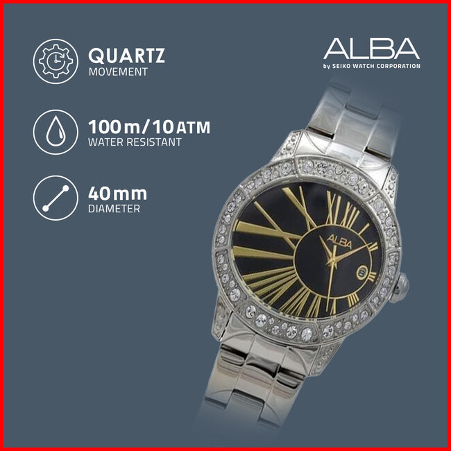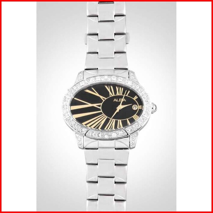 Alba Jam Tangan Wanita Axt317 Axt317x1 Fashion Quartz Black Dial Stainless Steel Strap Watch
