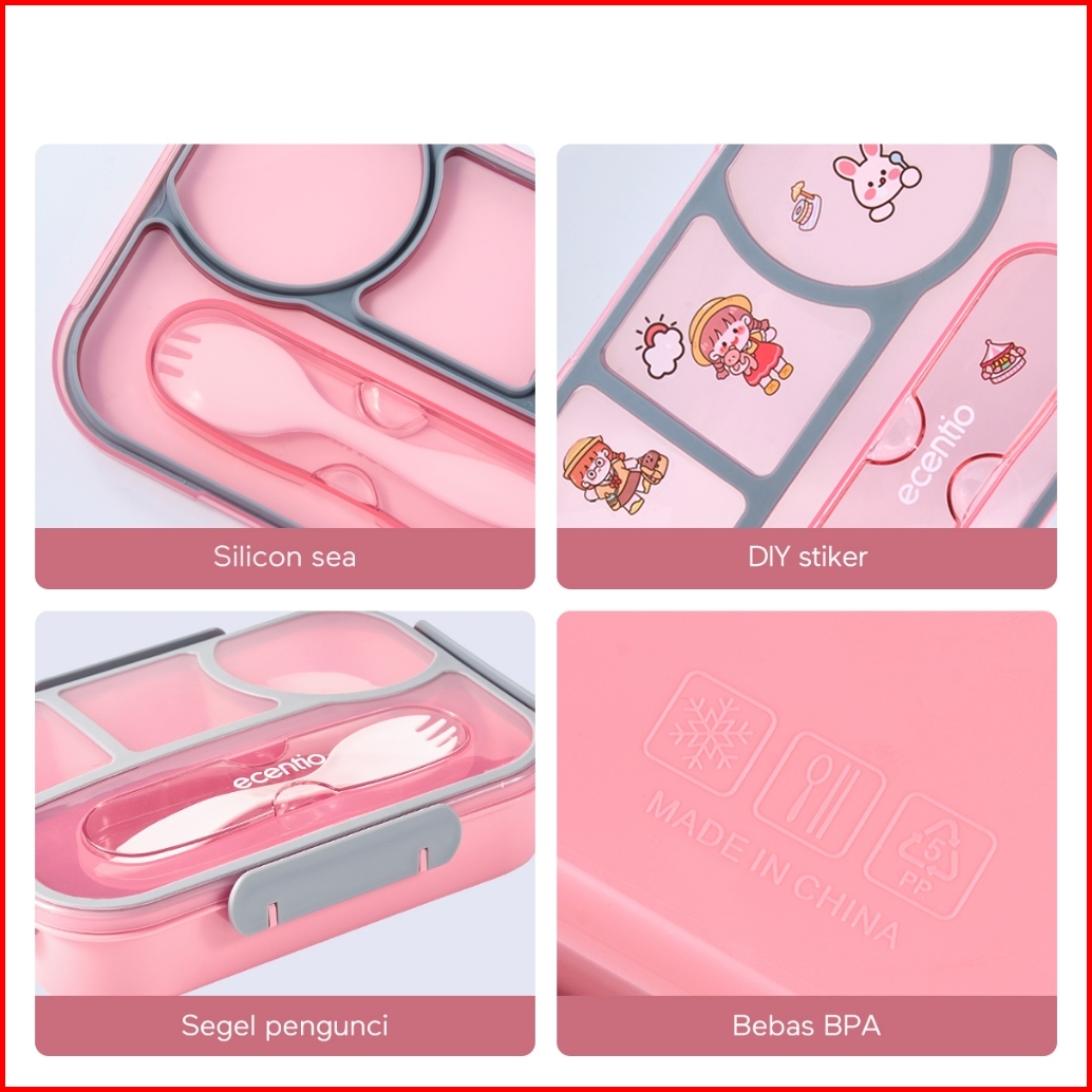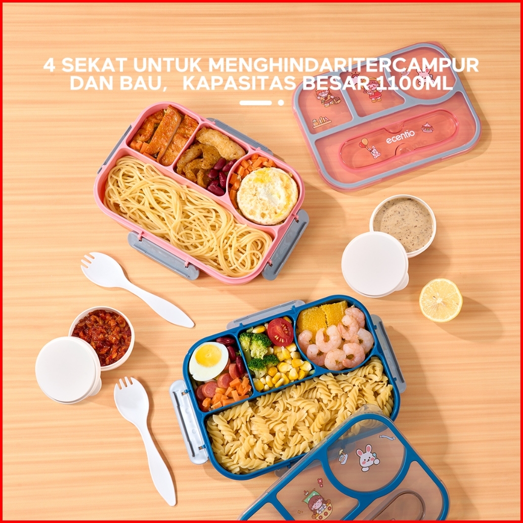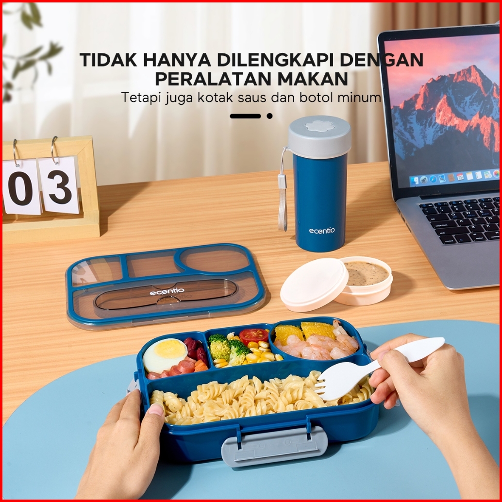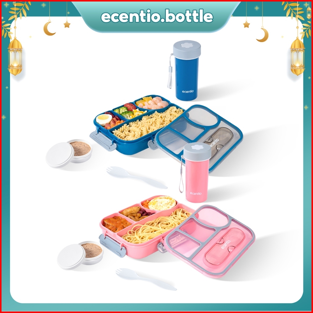 Ecentio Kotak Makan Set 1100ml 360ml Bpa Free Lunch Box Set Dan Wadah Saus 100ml Free Stiker Dan Sendok