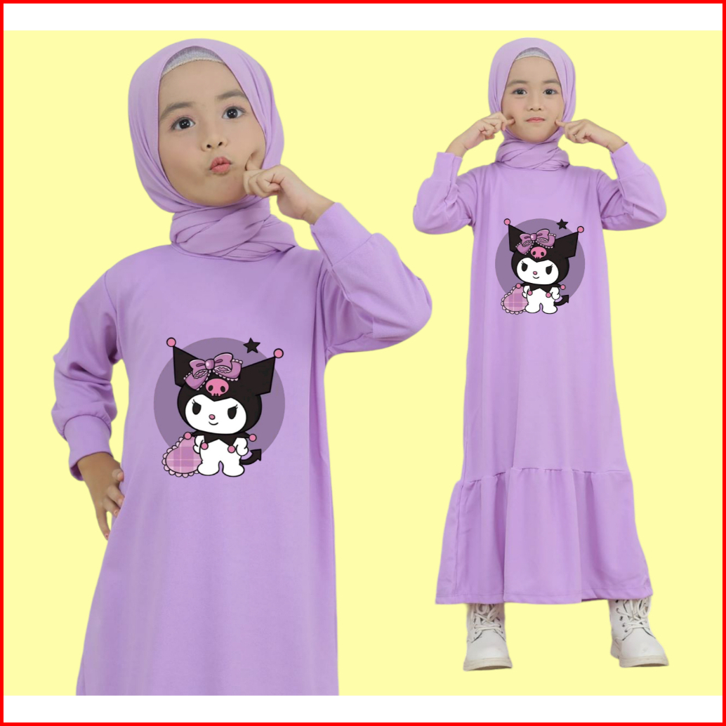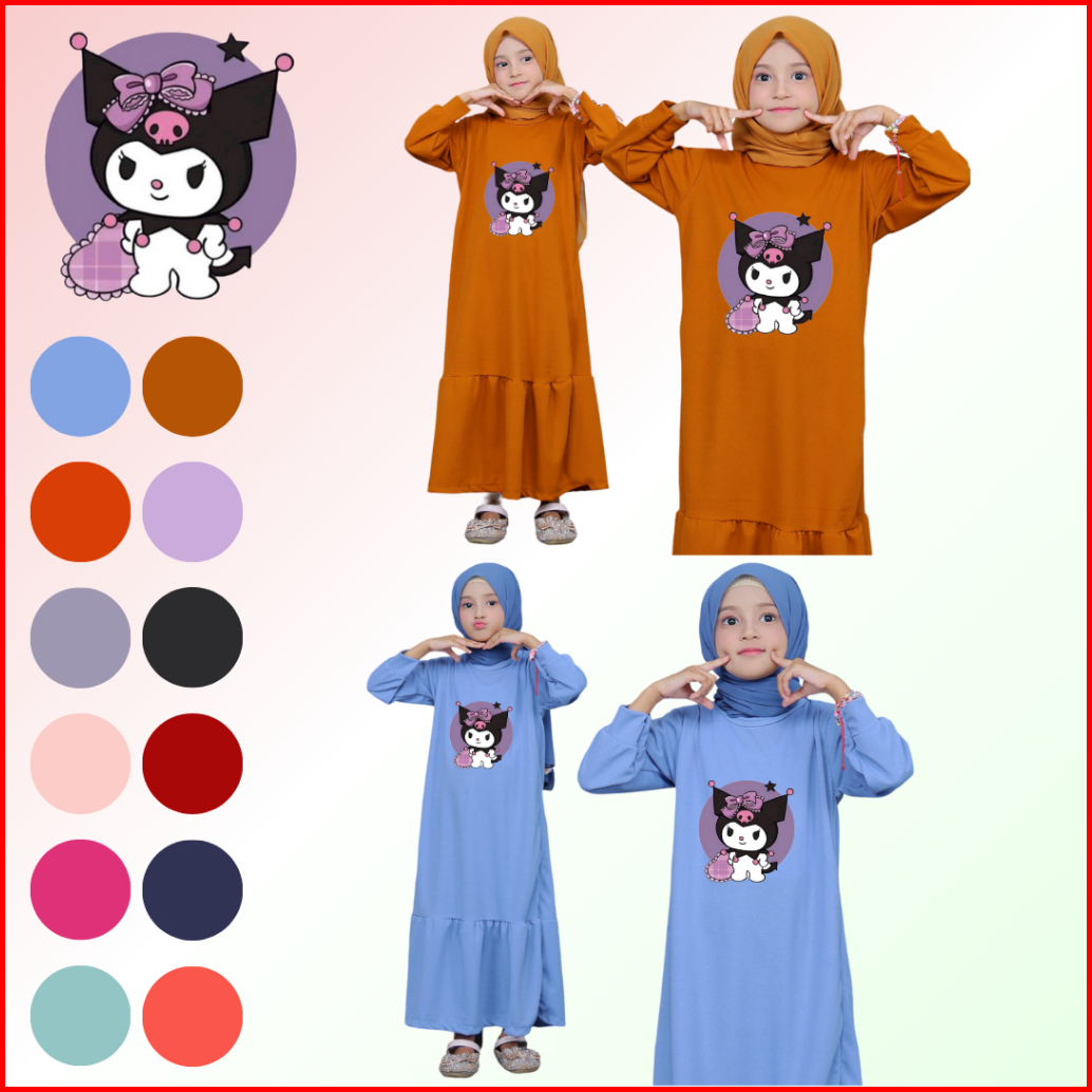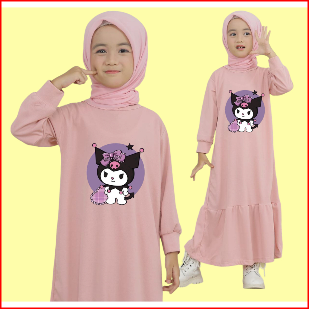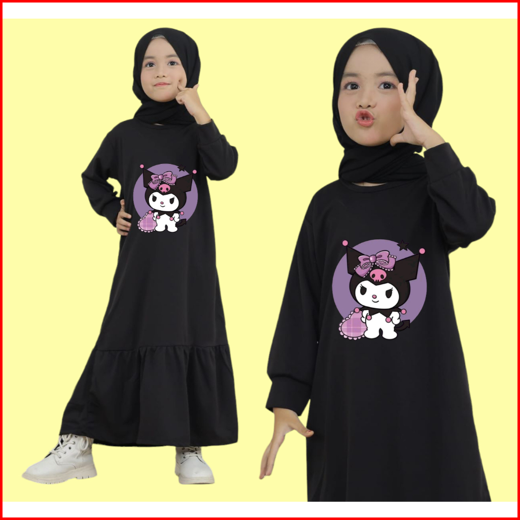 Gm050 - Gamis Anak Perempuan Motif Gambar Kuromi Kuromii Sanrioo Sanriio Usia 1 Sampai 12 Tahun Kyodai Kids