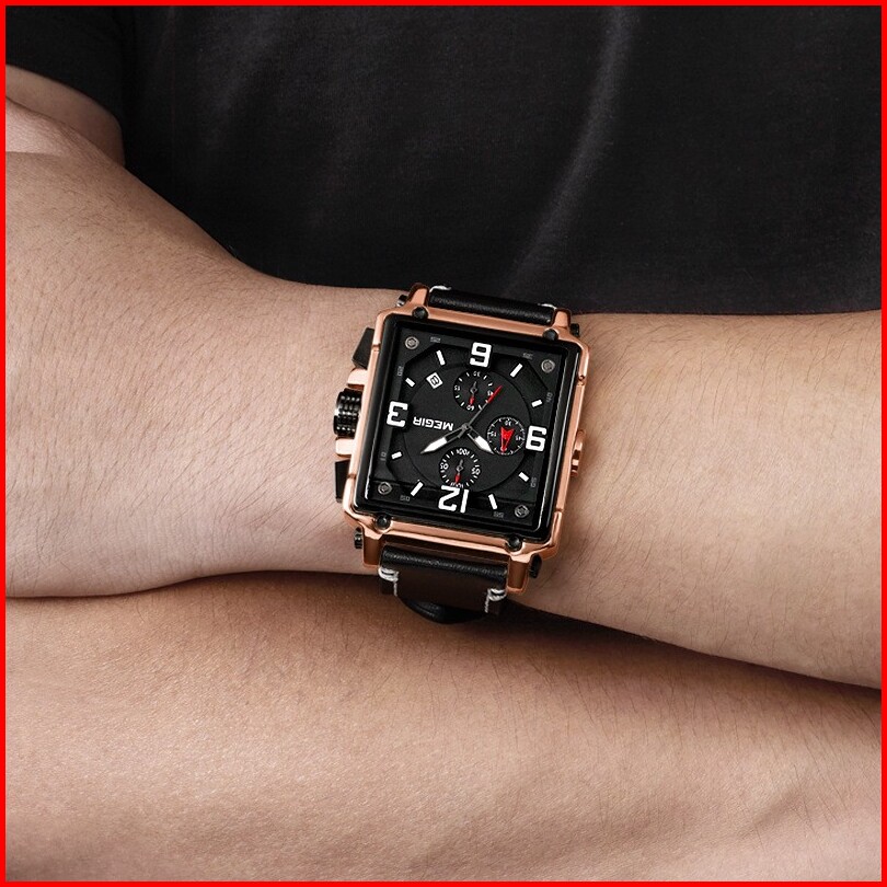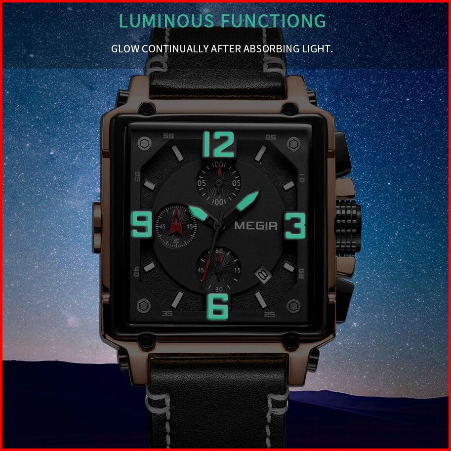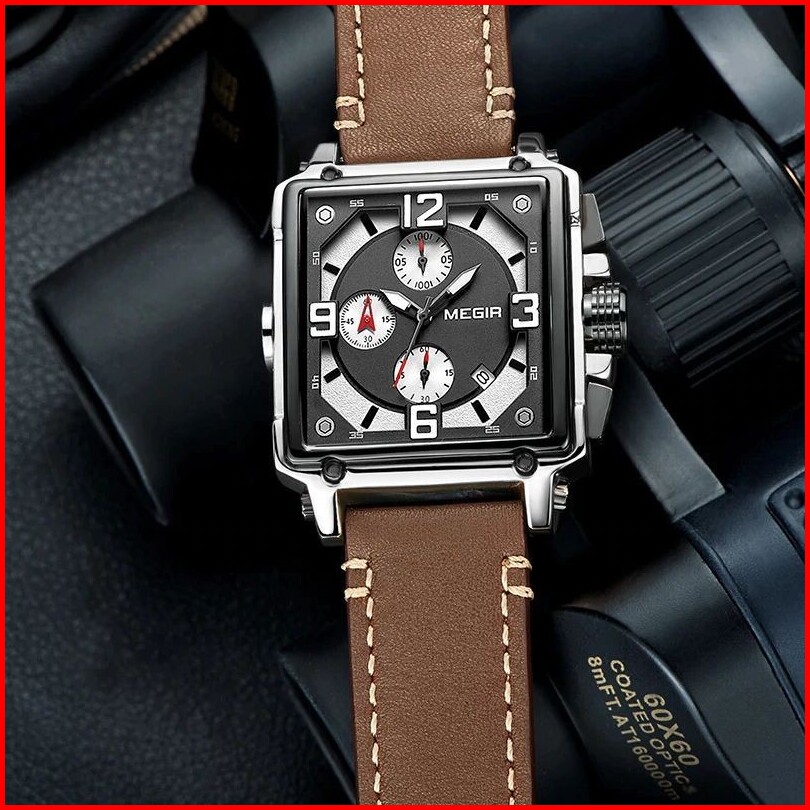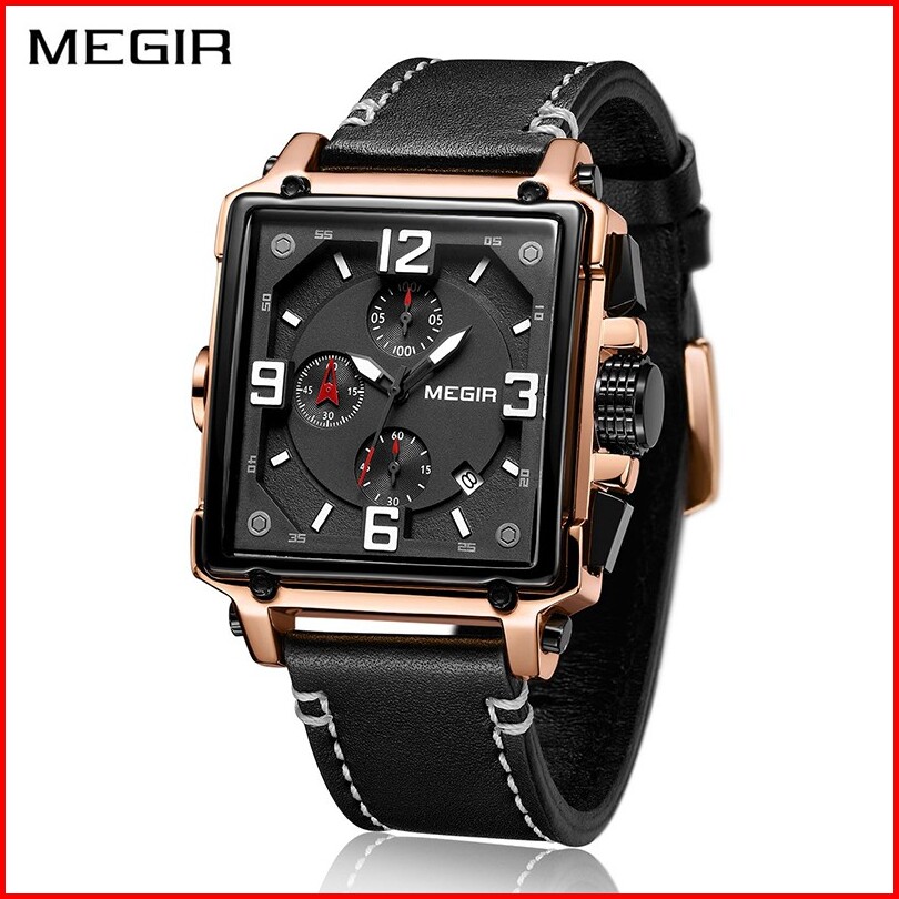 Megir 2061 Jam Tangan Pria Analog Chronograph Aktif Tali Kulit Currenos