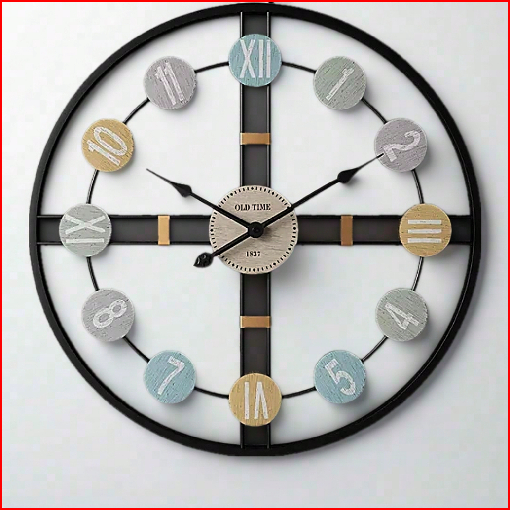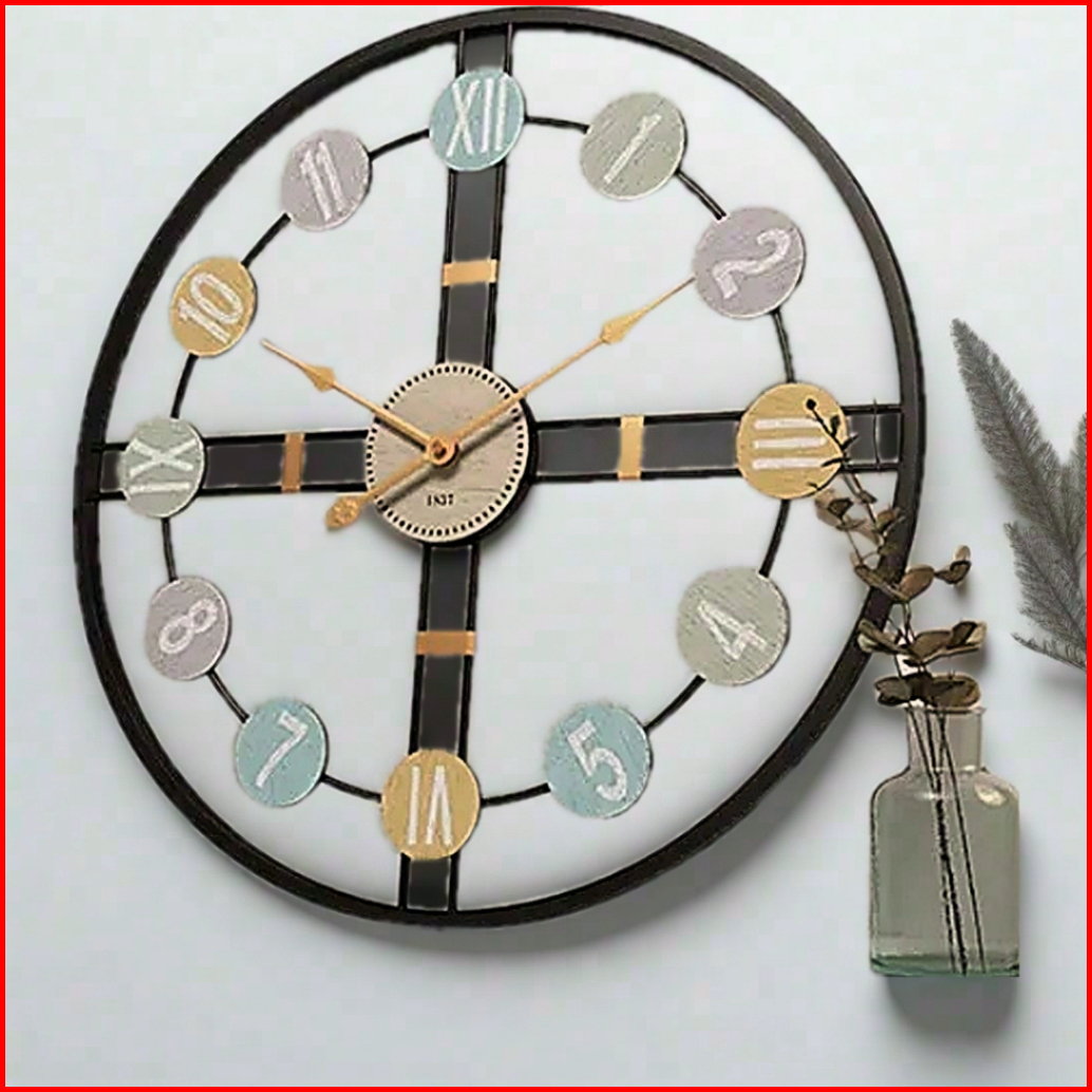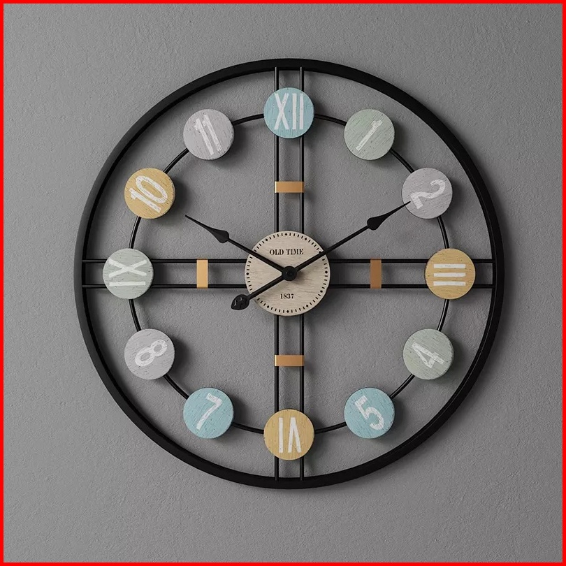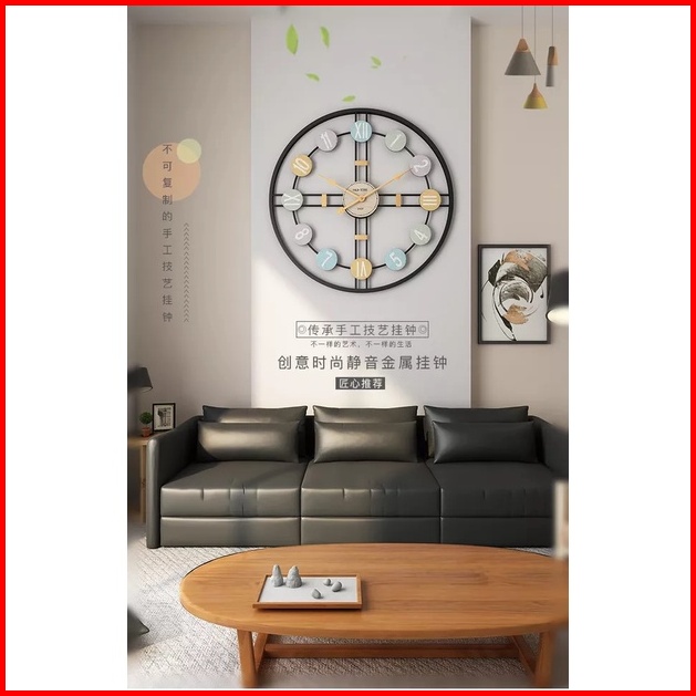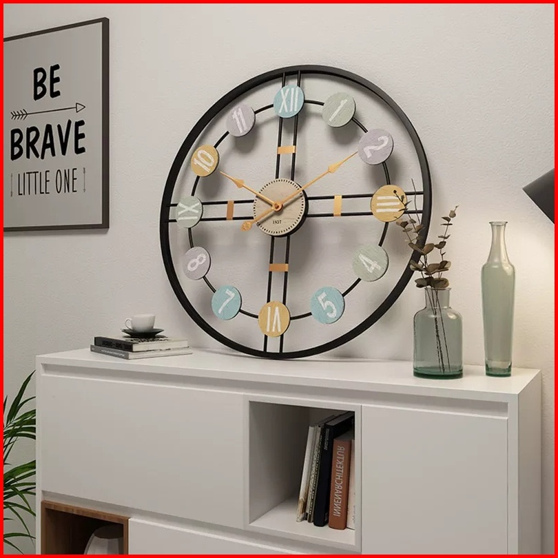 50 Cm Jam Dinding Retro Nordic Logam Angka Romawi