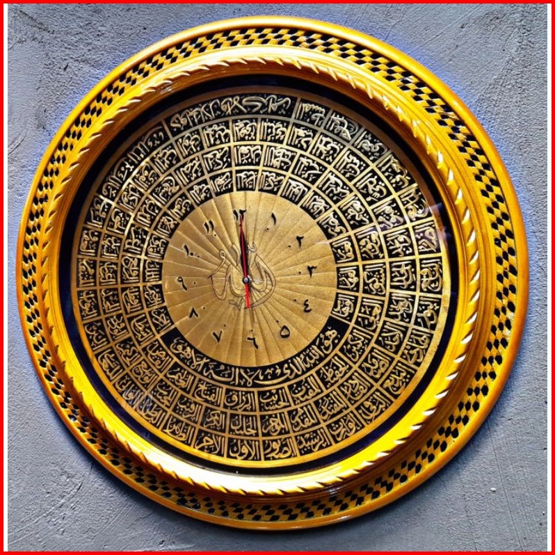 Kaligrafi Jam Dinding Diameter 75 Terbuat Dari Kayu Jati Asli Jepara