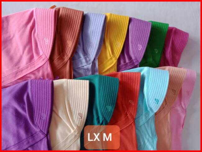 Putih, Hitam, Cokelat, Abu, Navy, Hijau Muda 505, Hijau Tosca, Sugar almond 32x, Pink 807, Army 525, Ungu Tua 905, Pink fanta 881, Salem 825, Sage 34B, Kuning 440, Hijau NU 52s, Biru toska 645, Biru langit 602, Marun 701, Reject/rabdom, Orens 702, Coksu 302, Karamel 301, Hijau matcha 527, lilac 824, Salmon 879, Dusty pink 809, Hijau alpukat507, Lavender 920, Peach 805, Country air 65B, Burgundy 960, Magenta 902, Baby pink, Peanut 305, Abu basah 205, Plum 901, Denim 66Q, Mahogani 772, Biru Turkish 508, Powder Blue 631, Biru Laut 638, Light Dusty 848, Krem 303, Ungu manggis 906, Latte 34c, Fired brick 787, Milo 35B, coral 773