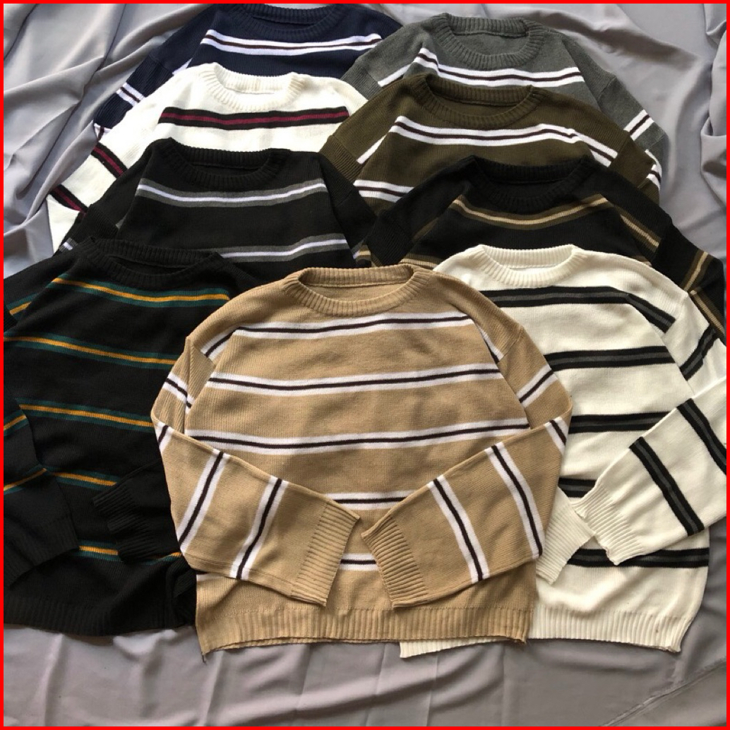 Trivia Sweater Stripe Halus - Sweater Atasan Rajut Halus Wanita Dewasa - Premium - Sweater Stripe Kekinian