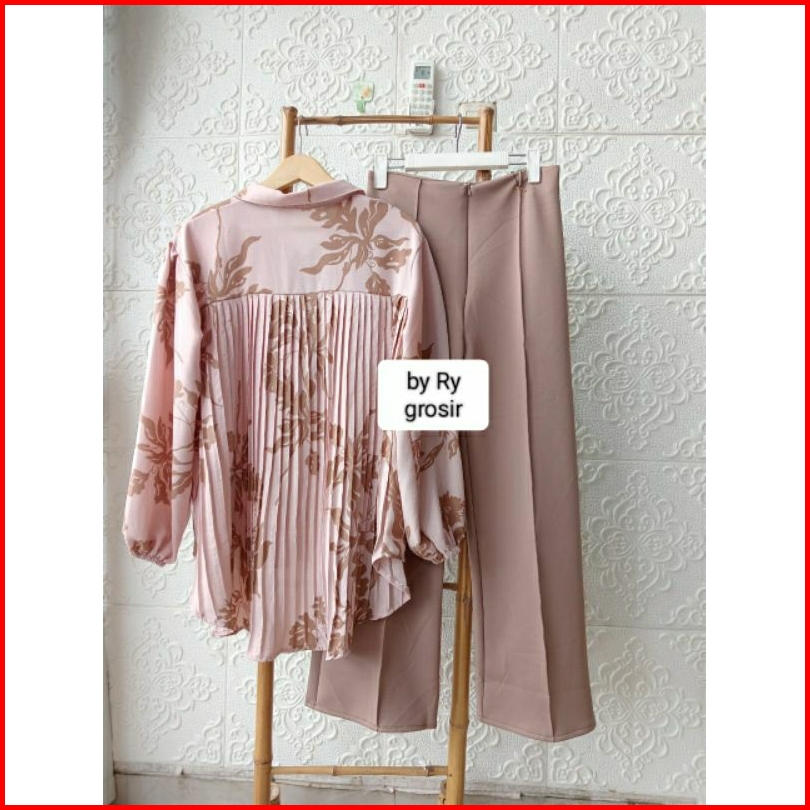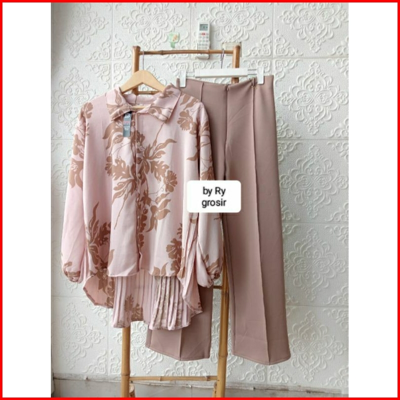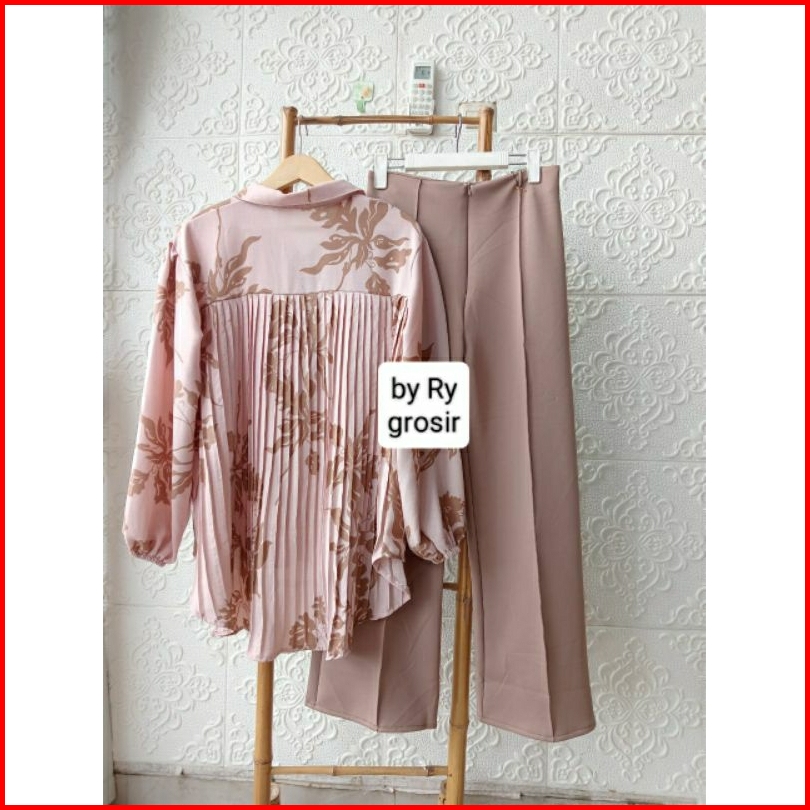 Setelan Wanita Kemeja Plisket Kulot Scuba Ukuran Standar Dan Jumbo Kekinian