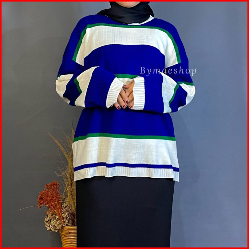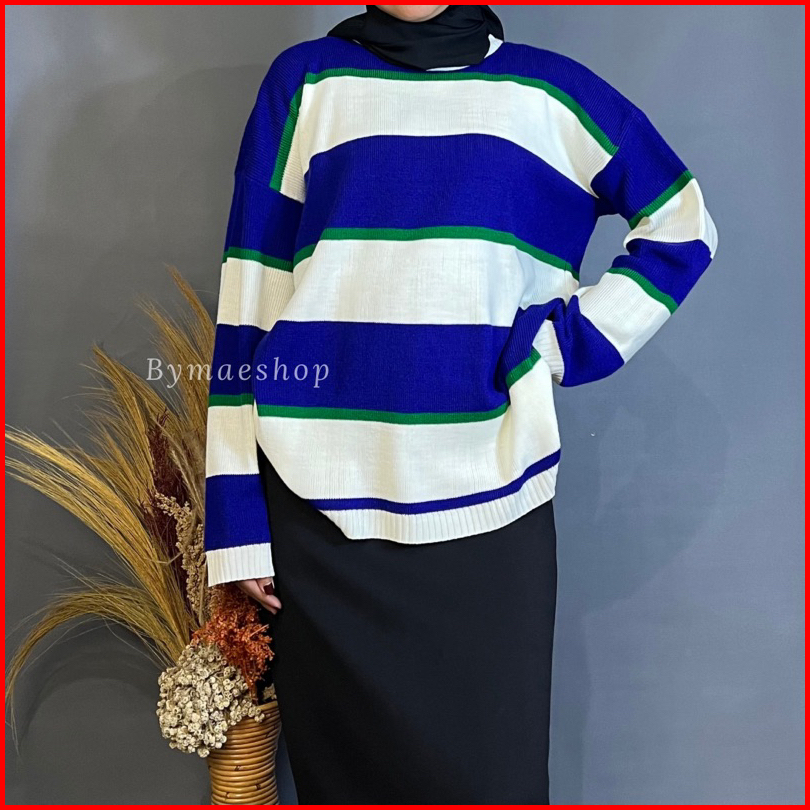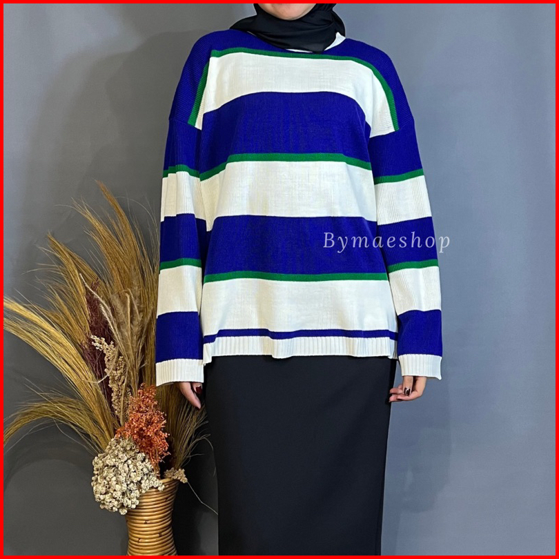 Moana Korean Sweater Stripe Oversize Knit - Atasan Wanita Rajut
