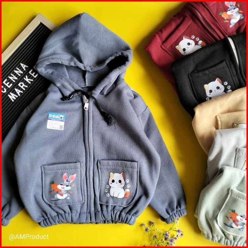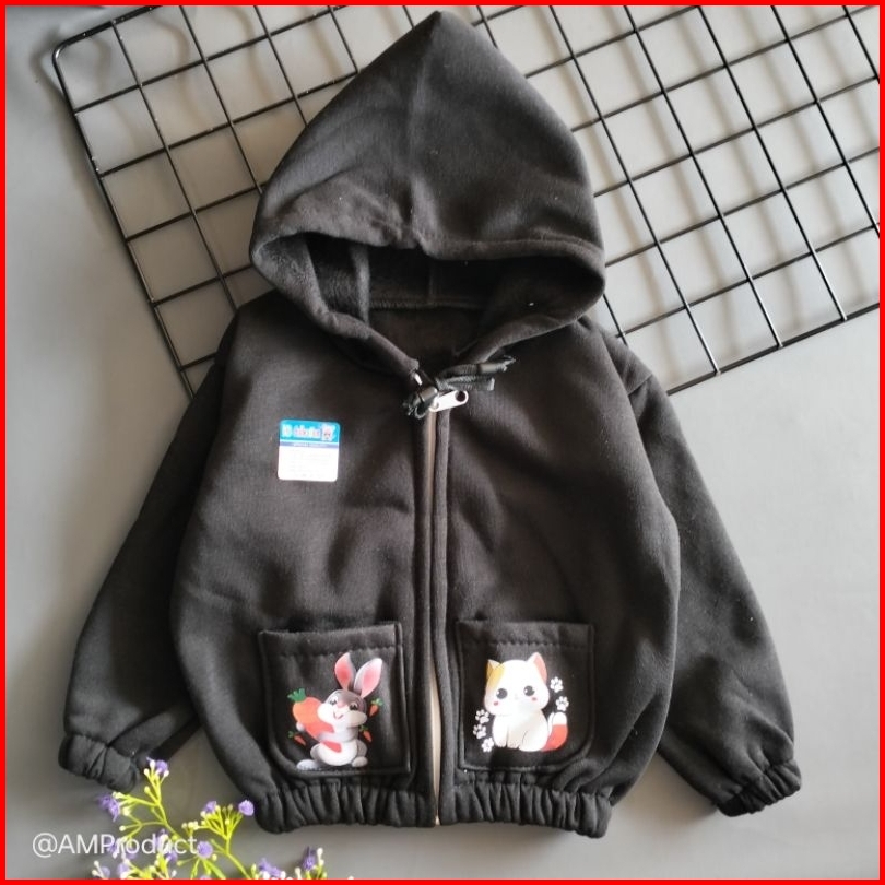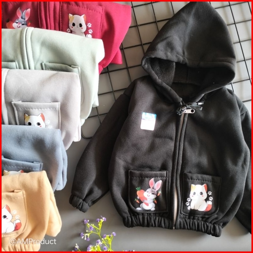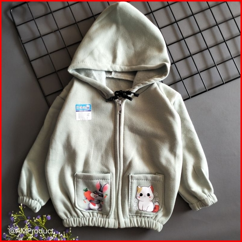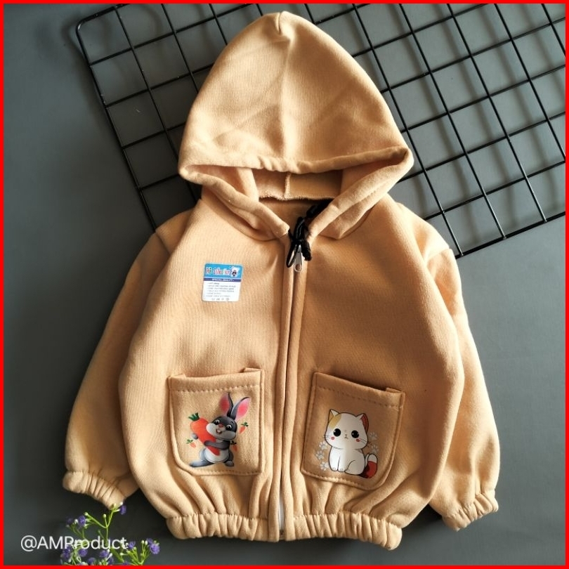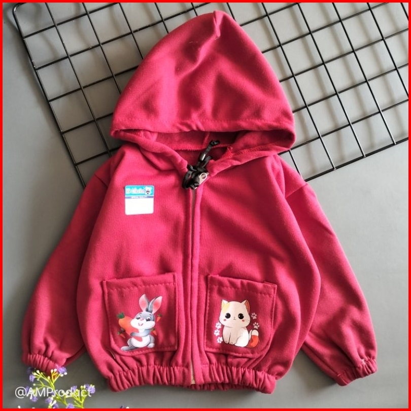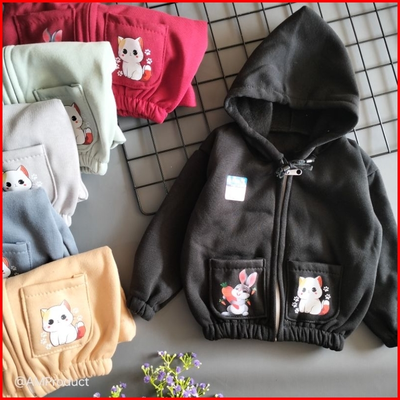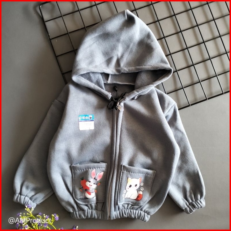 Jacket Mantel Bayi Gemoy Saku Motif Cat Rabit 3-18 Bulan
