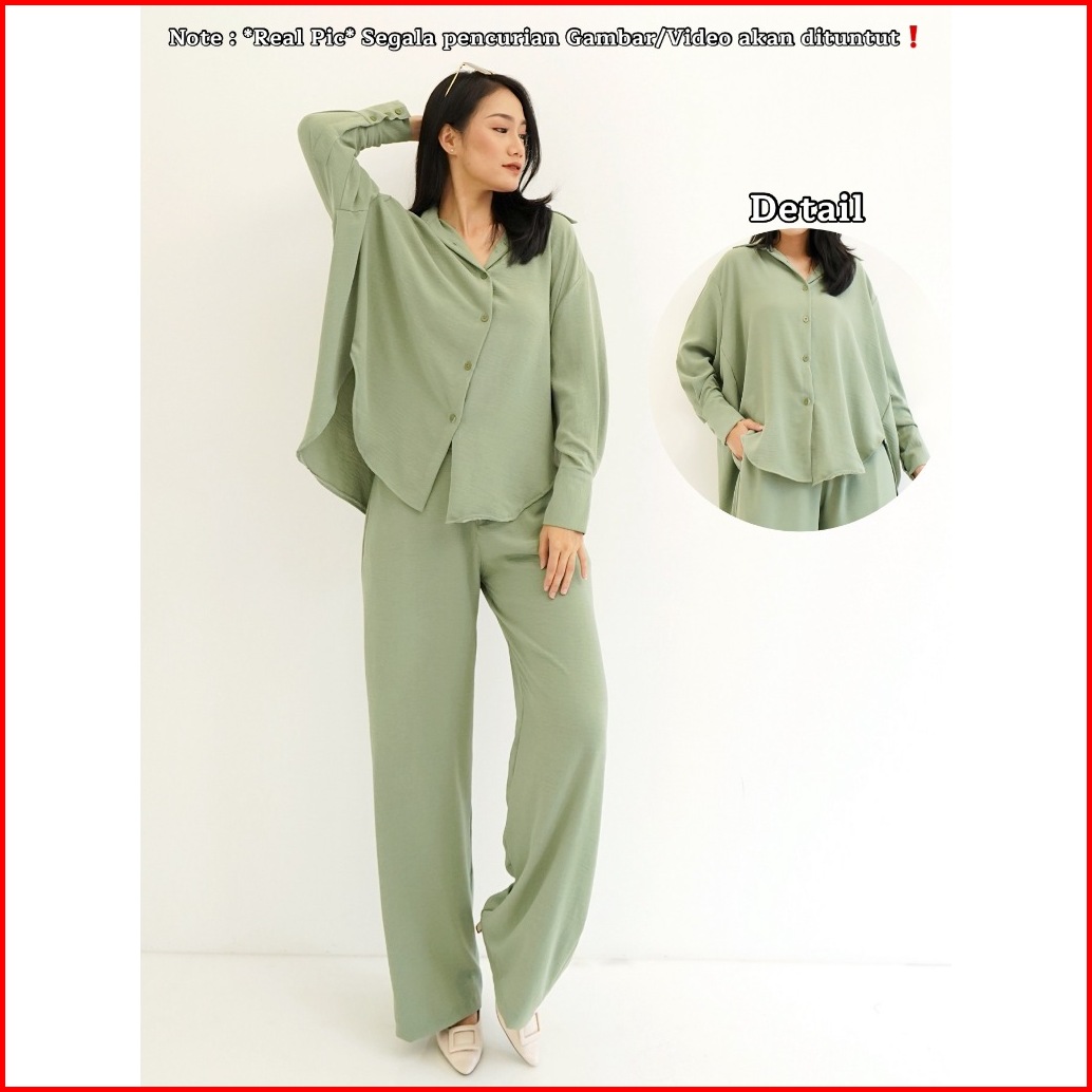 Red-metha Set 9023 Atasan Bawahan Setelan Kemeja Oversize One Set Celana Panjang Lengan Panjang Wanita Long Set Crinkle