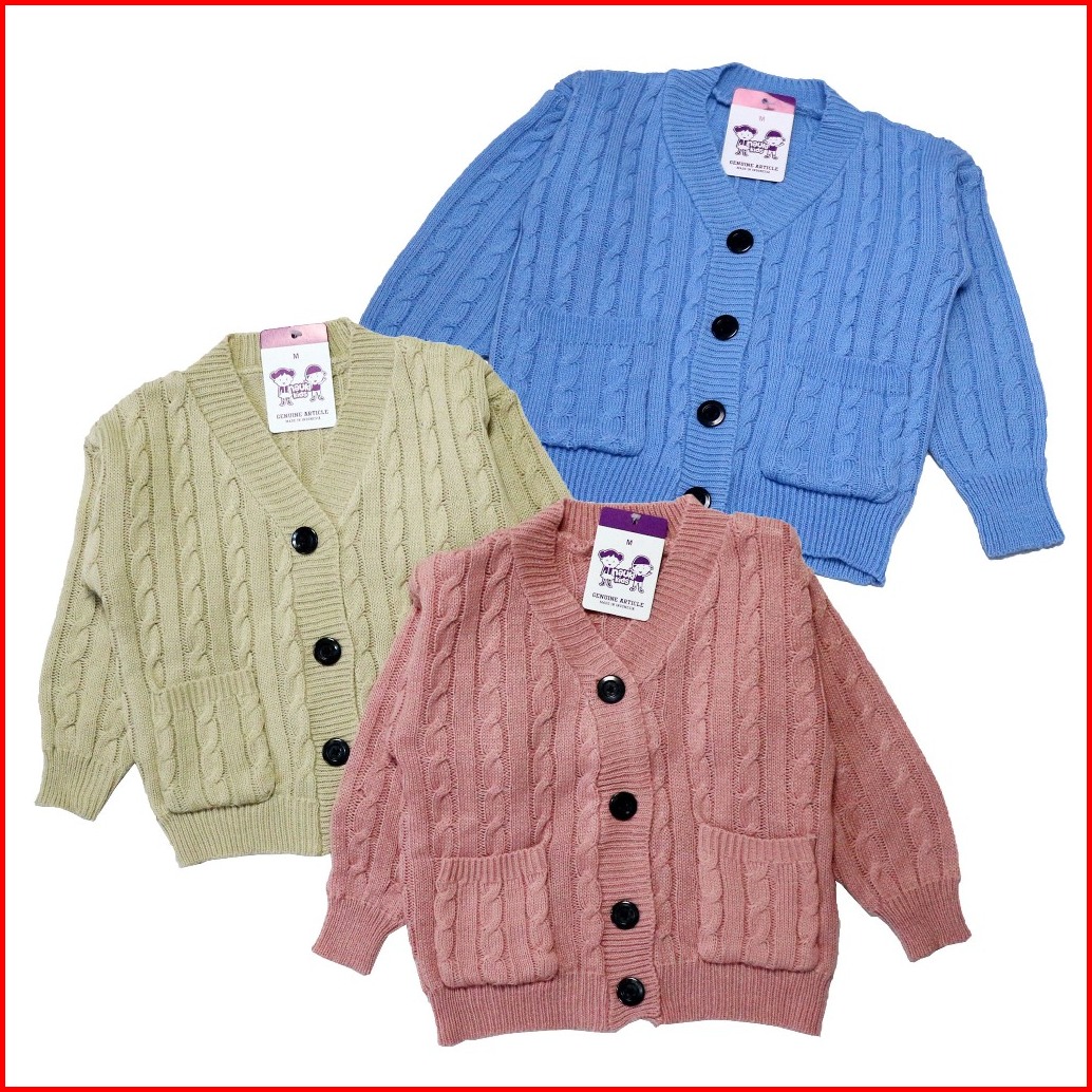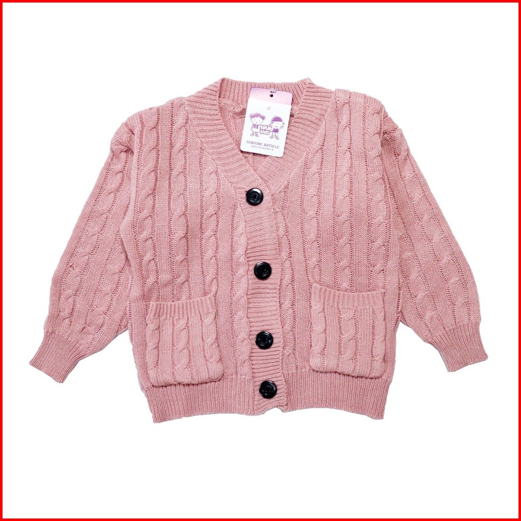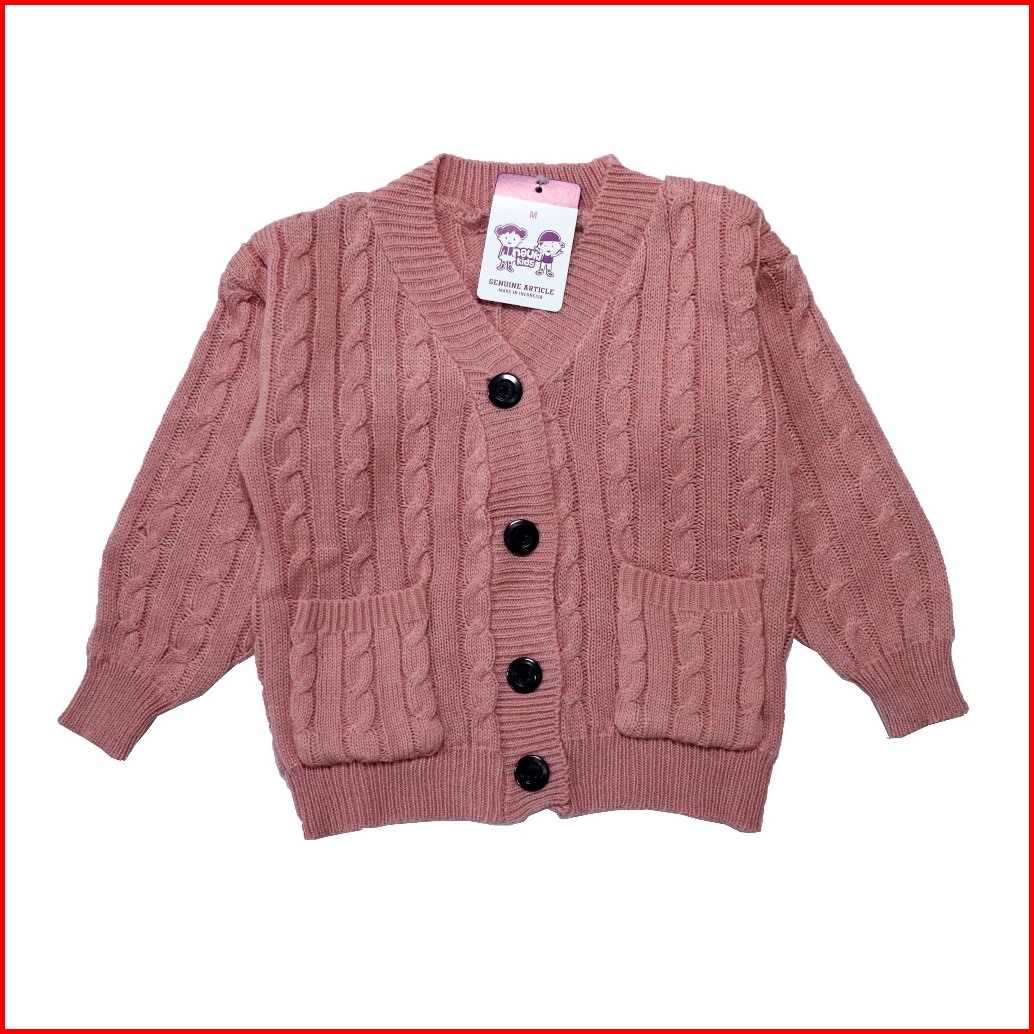 Cardigan Anak Perempuan Rajut Cable Kepang Usia 2-10tahun