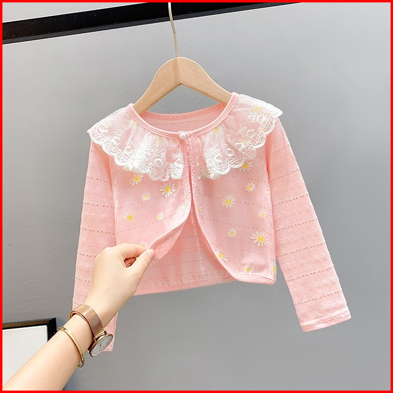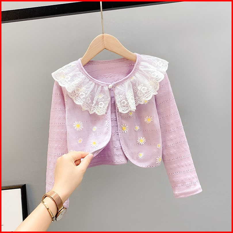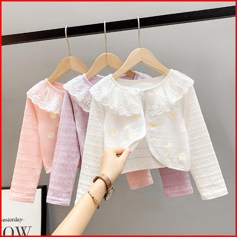 Kf8 Cardigan Jaket Tipis Luaran Anak Perempuan Motif Kerah Renda Bunga