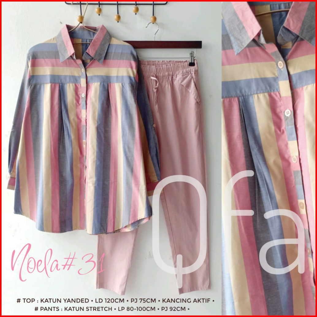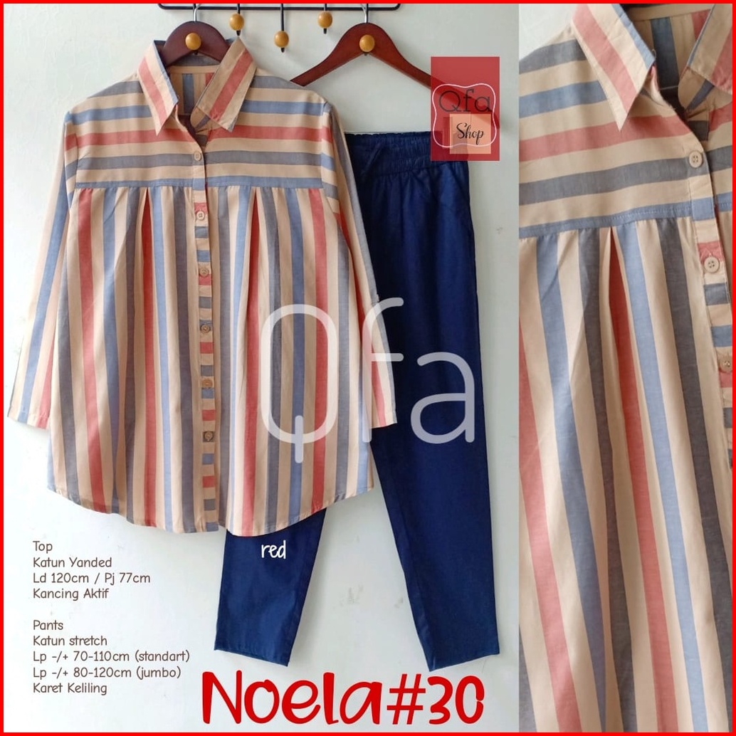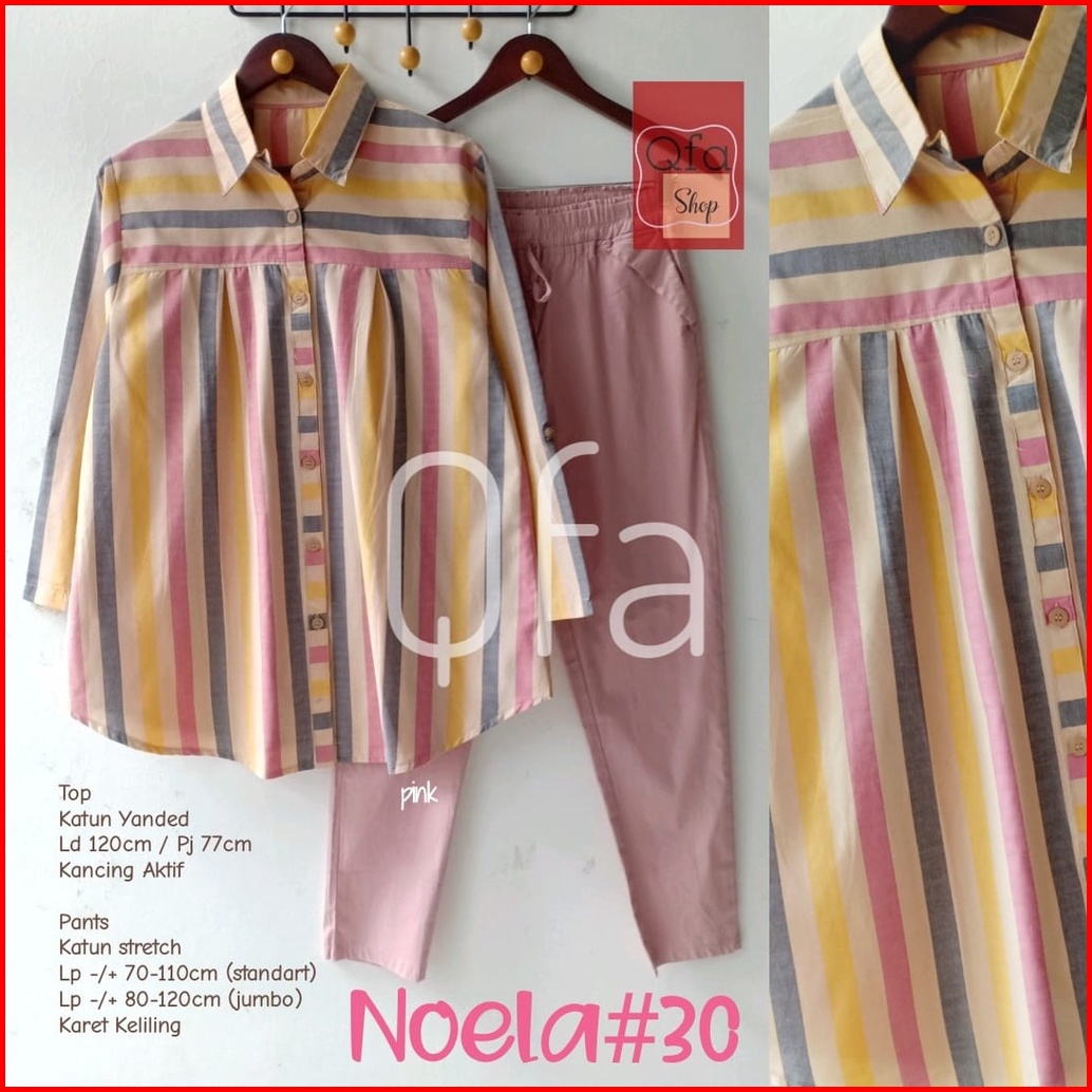 Setelan Kemeja Wanita Noela Set Motif Garis Ukuran Standart Dan Jumbo Ld 120 Cm By Qfa Q-fa