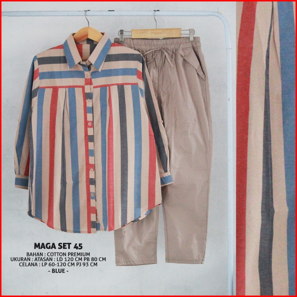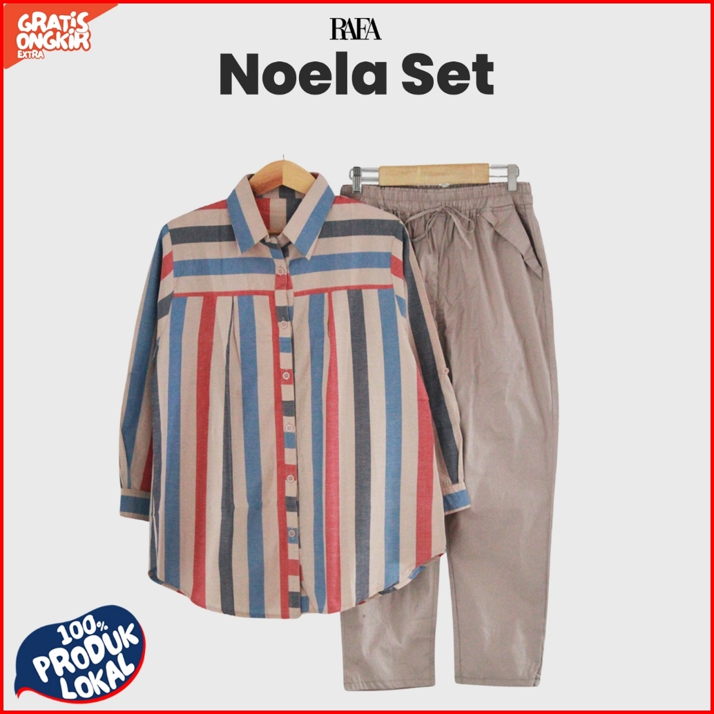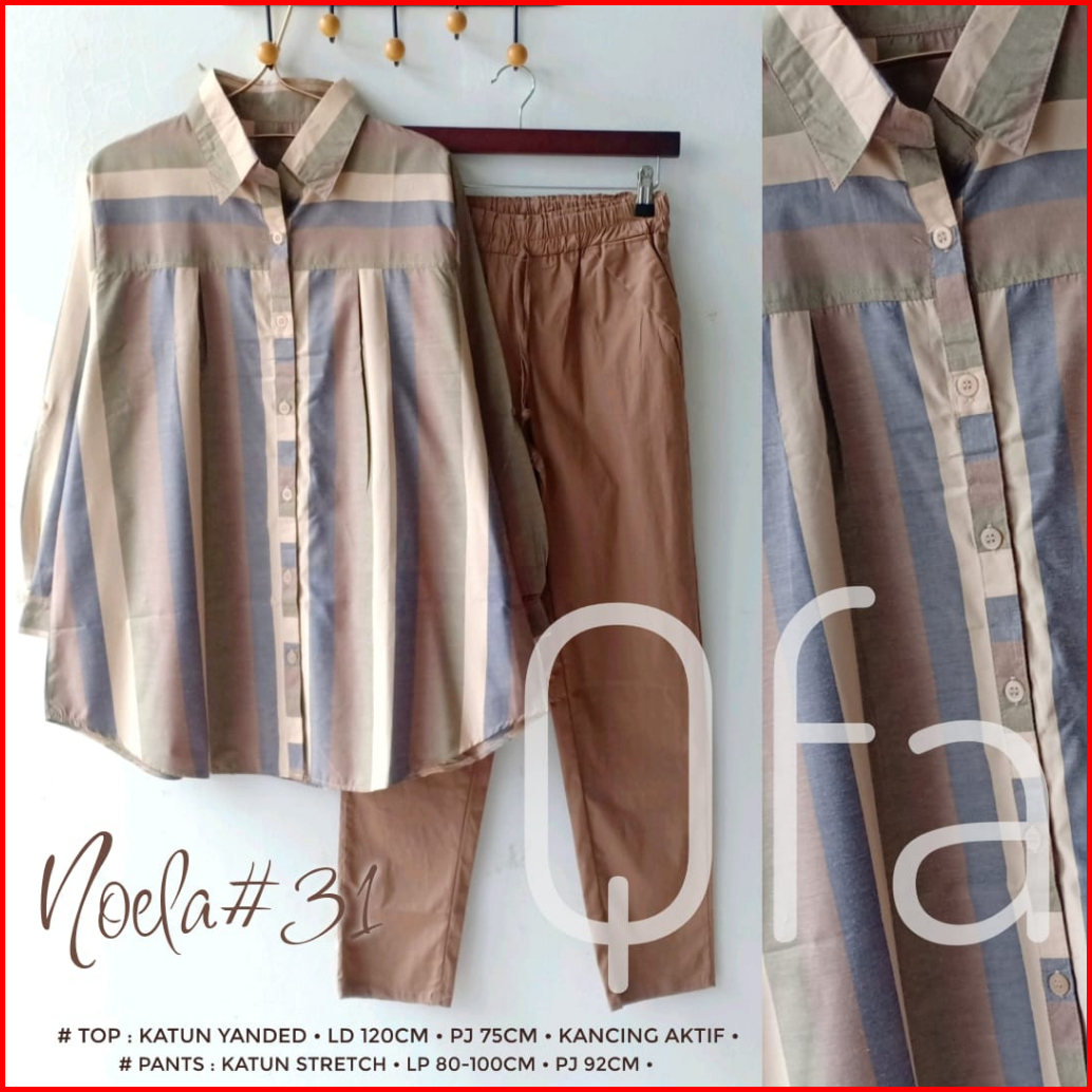 Setelan Kemeja Wanita Noela Set Motif Garis Ukuran Standart Dan Jumbo Ld 120 Cm By Qfa Q-fa