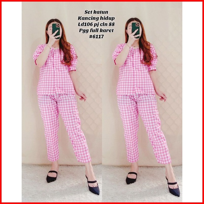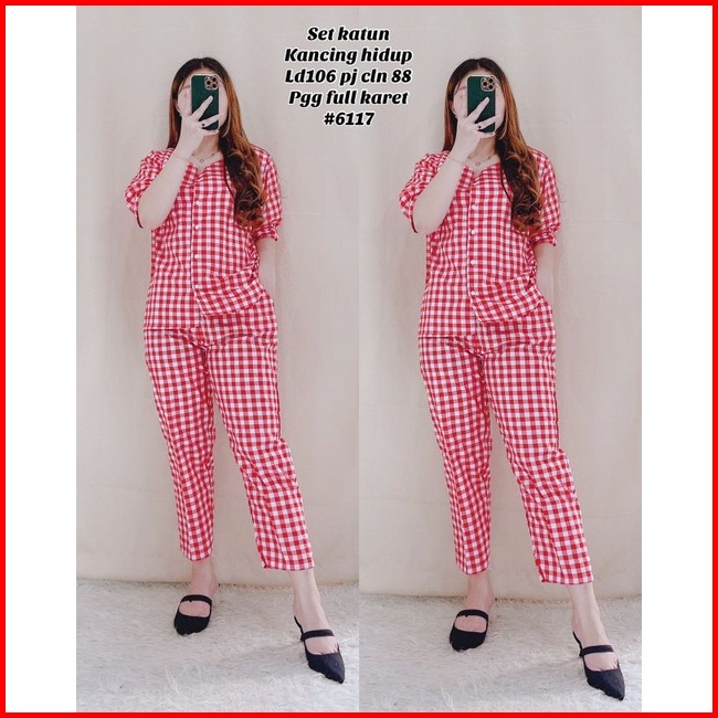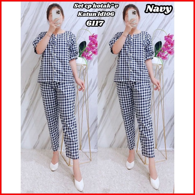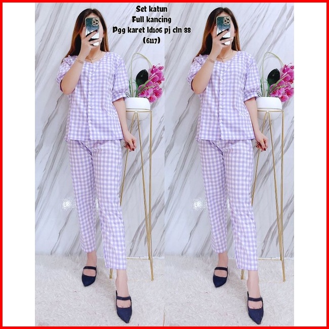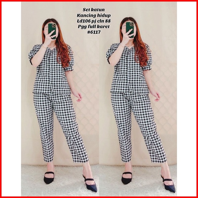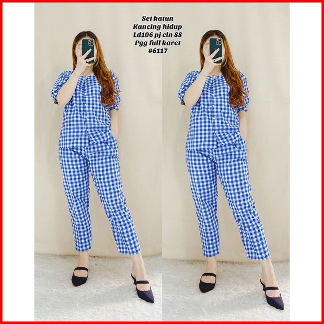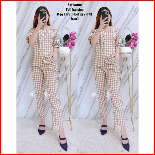 Best Seller Setelan Celana Panjang Kemeja Kotak Katun6117