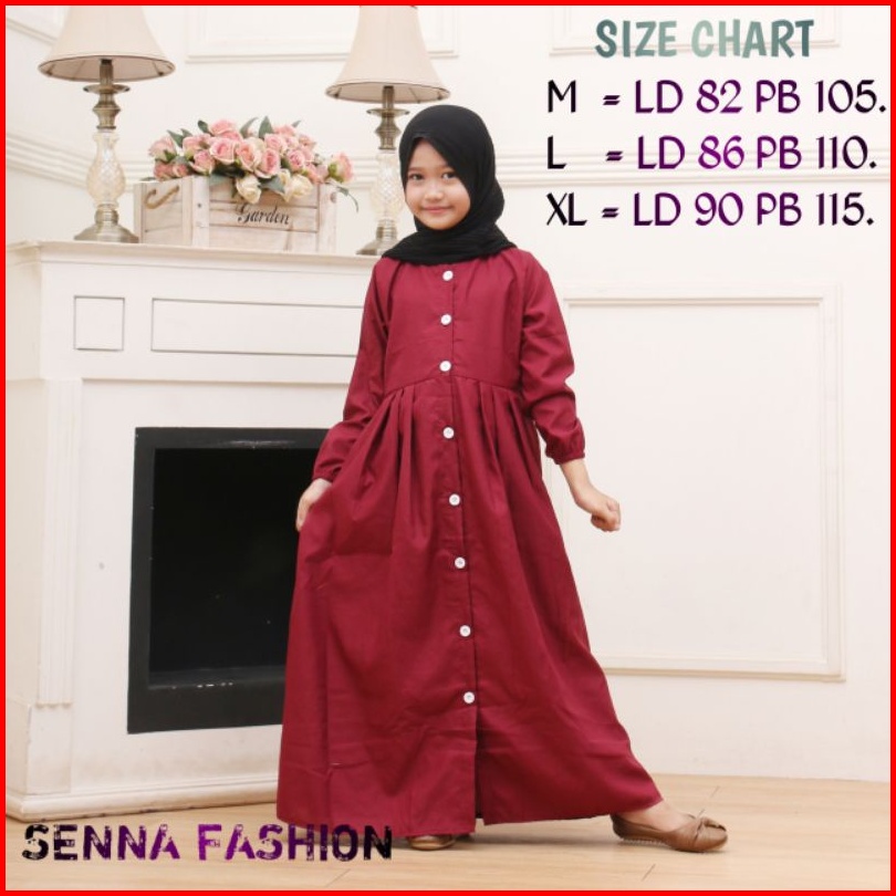 Gamis Anak Gamis Katun Polos Gamis Anak Perempuan Full Kancing Usia 7-12th