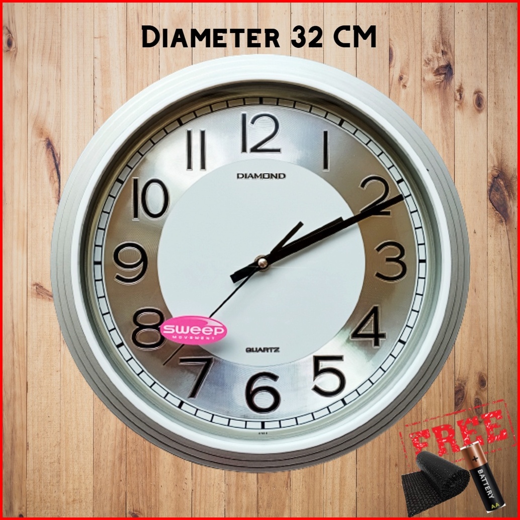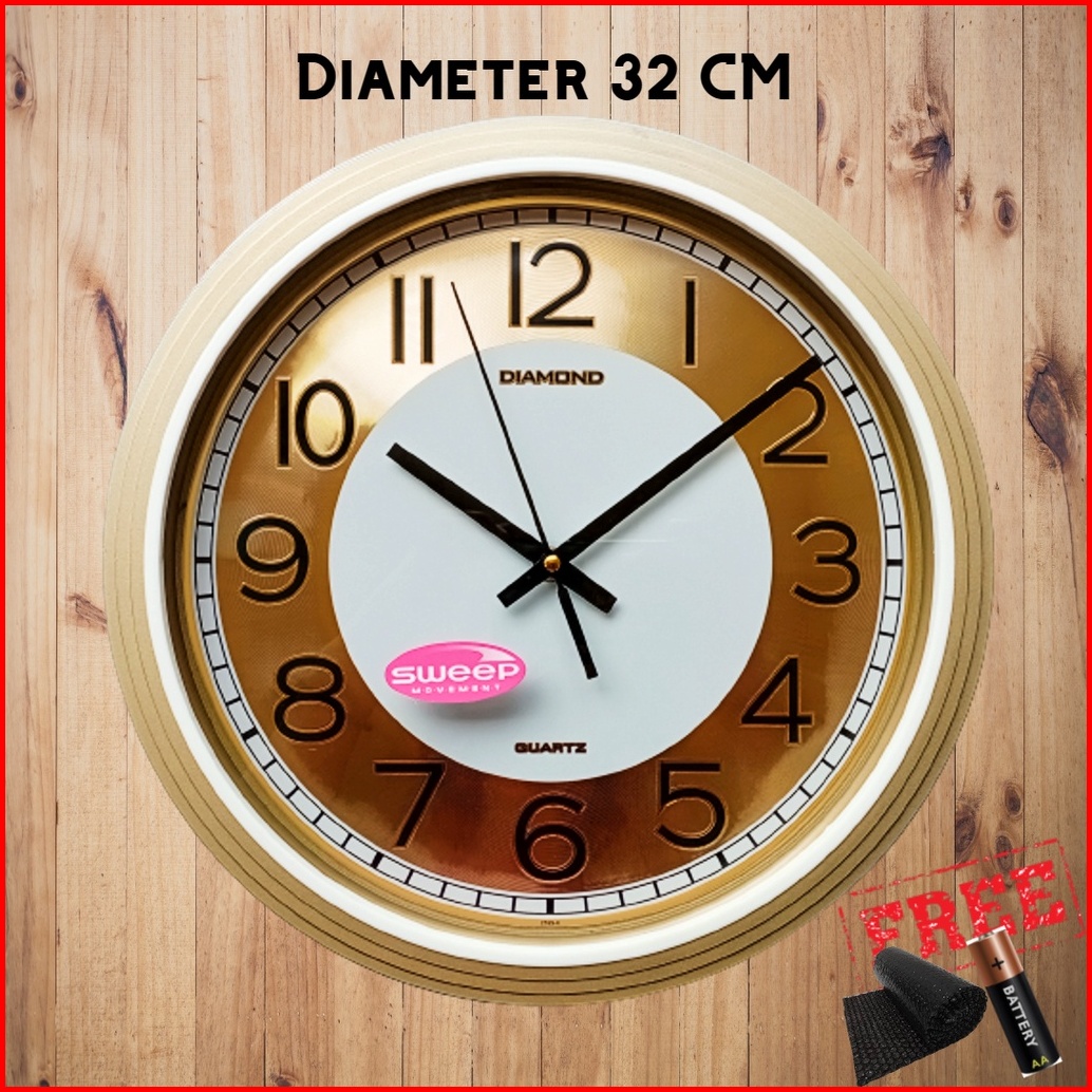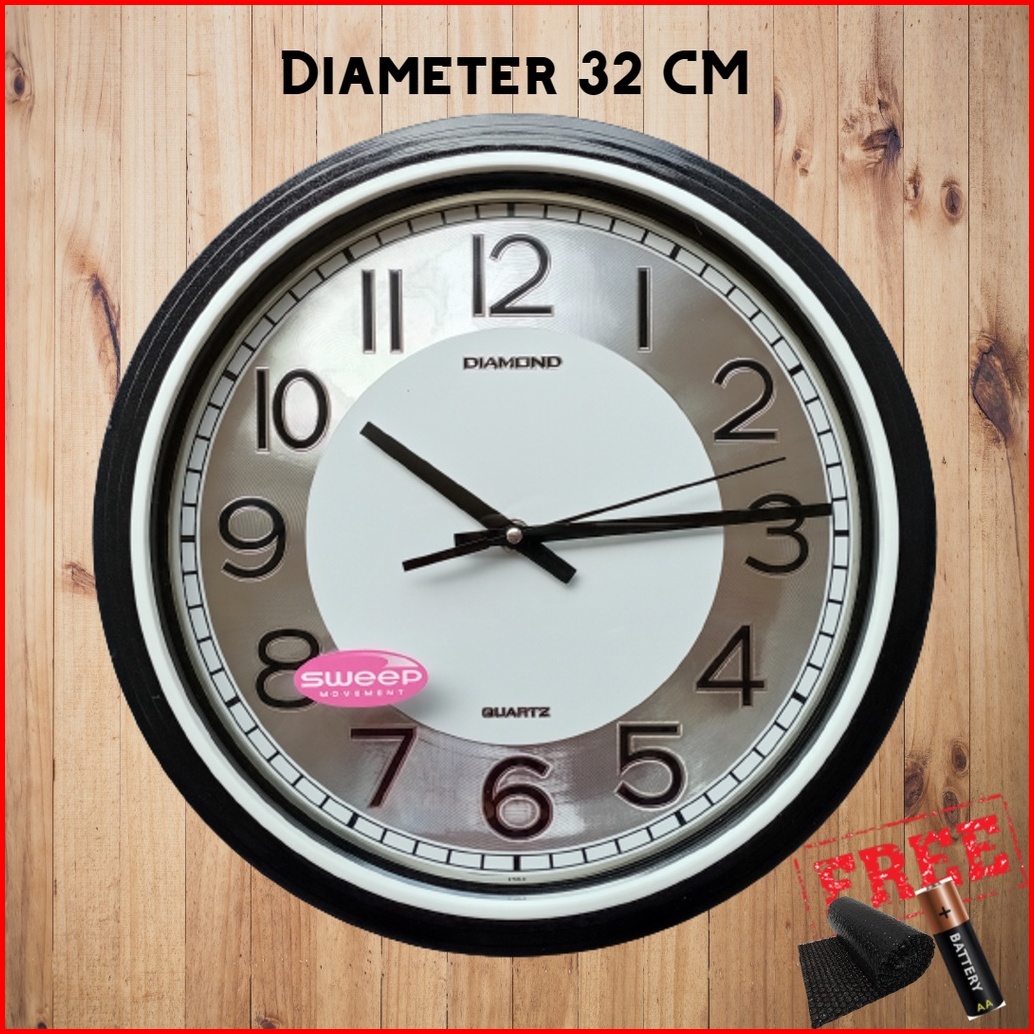 Jam Dinding Mewah Besar Sweep Silent Senyap Quartz Original Diameter 32cm Diamond 321-8
