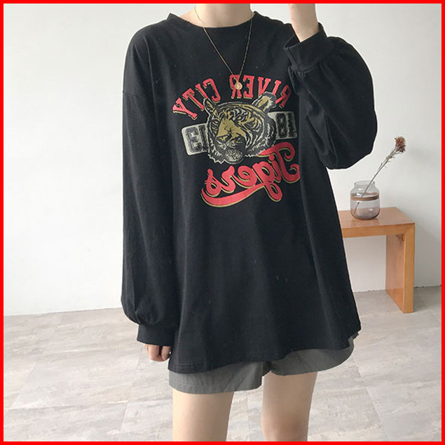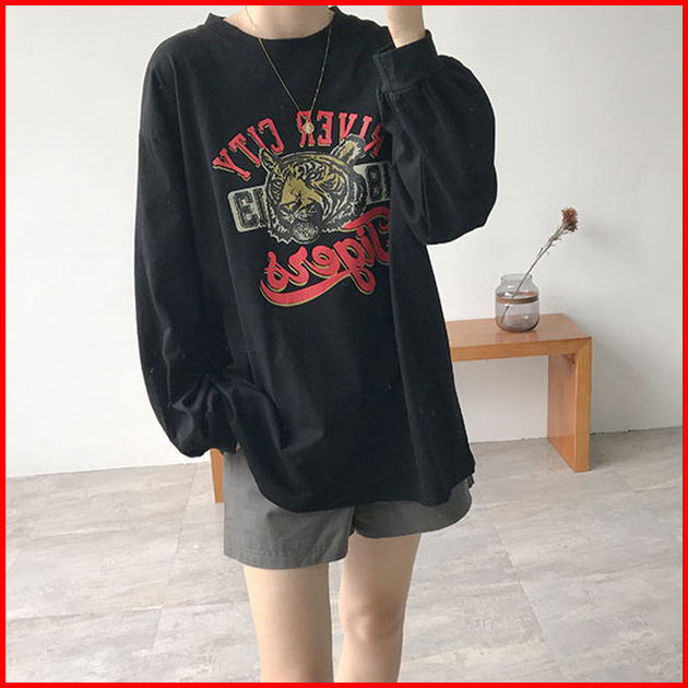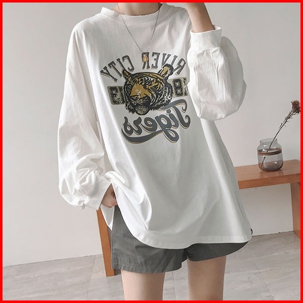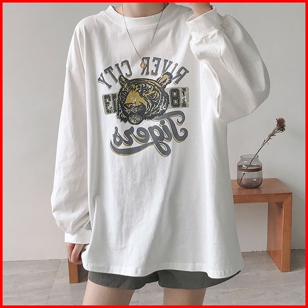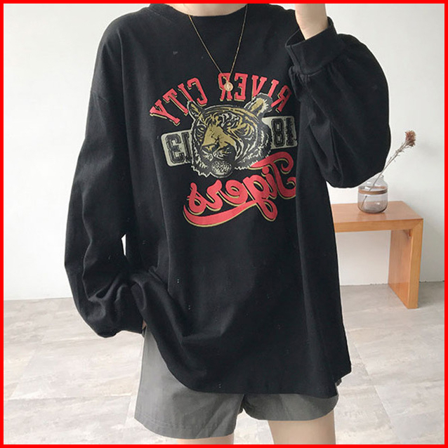 Kaos Lengan Panjang Motif Harimau Longgar Baru Untuk Wanita